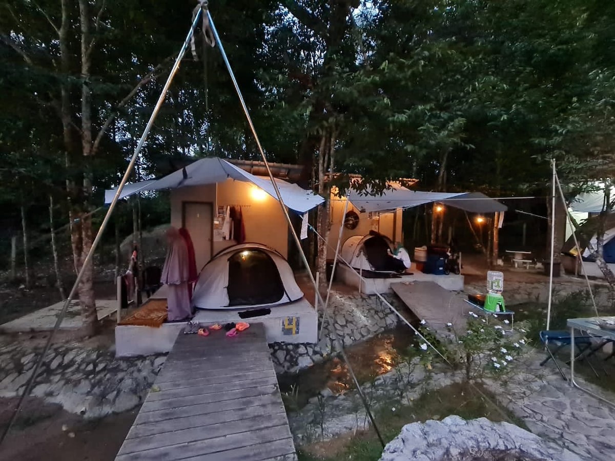 Escape to a charming riverside village surrounded by nature 🌿 1- 5 villas,If not found,msg host. Stay in a cozy tented villa perfect for families or small groups. Enjoy a clear river just steps away for relaxing, river trekking, and jungle experiences. Up to 2 extra beds are available at RM70 per bed, making it ideal for 4–6 guests. Note: Some works in progress at the site. Minor disturbances are unavoidable, but the natural beauty and peaceful riverside setting remain a delightful escape.