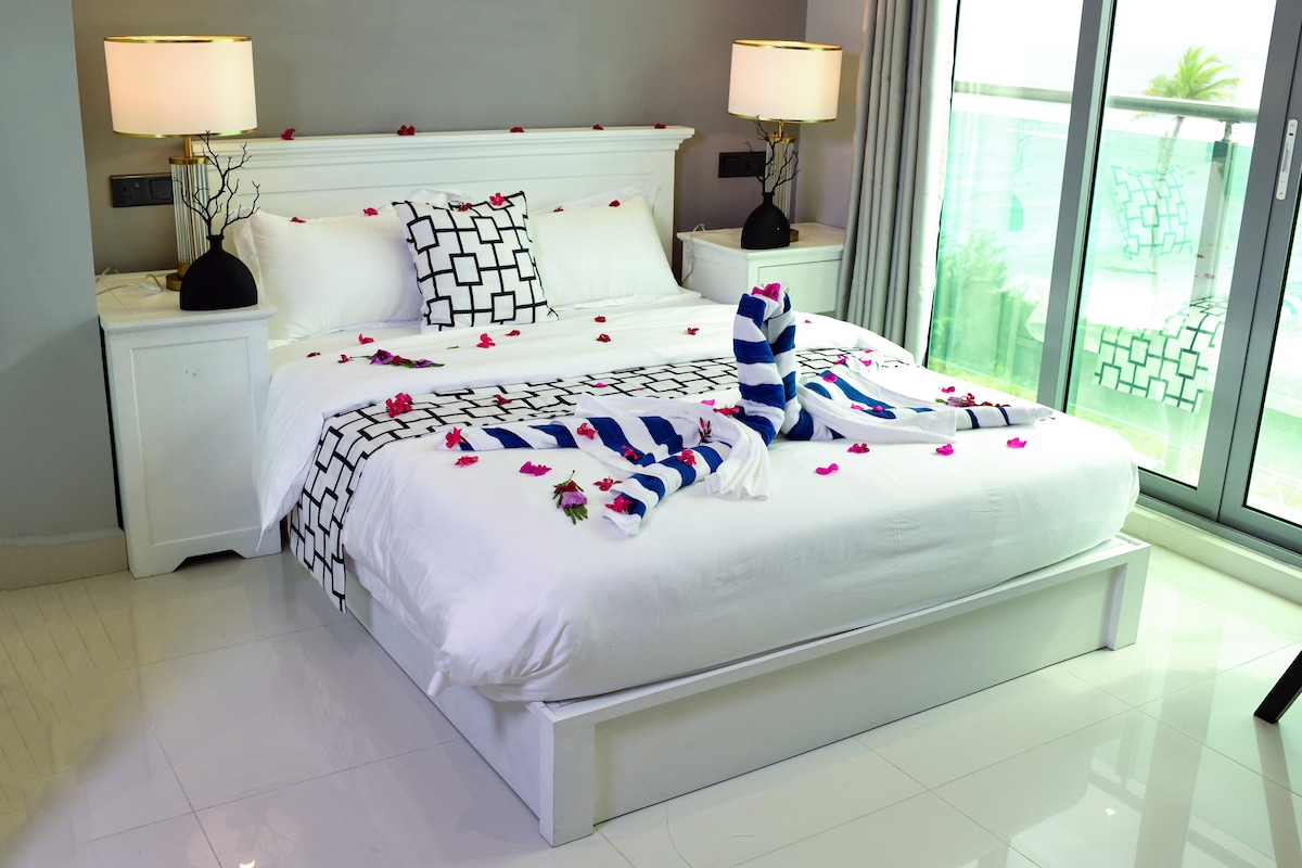 TROPISCHER AUSFLUG ZUM MEER Friedlich, entspannen und genießen Sie mit der ganzen Familie in dieser ruhigen, geräumigen, modernen 2-Zimmer-2-Bad-Strandwohnung mit Küche und Waschküche. Hulhumalé' Phase 1 Entspannen Sie sich am Strand mit Wassersportaktivitäten und Schwimmen. Restaurant vor Ort und viele weitere Restaurants verschiedener Küchen in Gehweite. Ganz in der Nähe des internationalen Flughafens Velaanaa (7 Minuten) Auf Anfrage der Gäste arrangieren wir - Angelausflüge - Resort- und Flughafentransfer