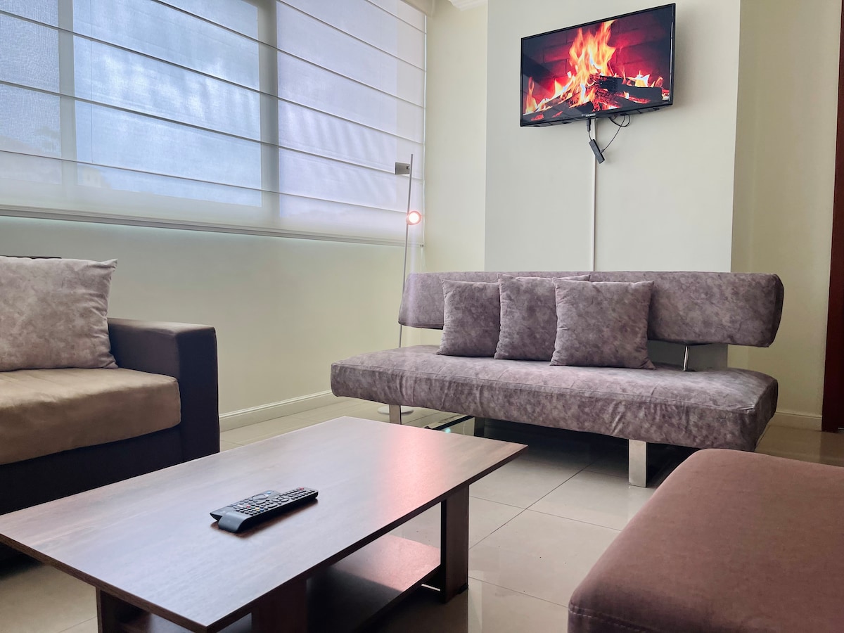 🏡 EXCLUSIVE APARTMENT IN PUERTO SANTA ANA | TOURISM & REMOTE WORK | WIFI + PARKING | LUXURY RIVERFRONT 2 BUILDING WITH ELEVATOR AND SOCIAL AREAS ✨ Feel at home 👤 Up to 7 guests · 🛏️ 2 bedrooms · 🛌 3 beds + air mattress 🚗 Free private parking (additional parking available at extra cost) 🏊 Swimming pool, gym & jacuzzi 📍 Puerto Santa Ana, next to the Guayas River, close to Malecón 2000, Las Peñas and Cerro Santa Ana 📶 (1 GB) Wi-Fi · 📺 Netflix A comfortable space to relax or work.