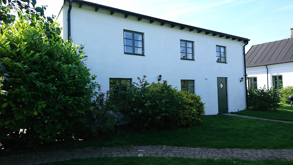 Etwas außerhalb von Trelleborg vermieten wir unser Gästehaus mit 25 m² + Dachboden. Etwa 7 Minuten mit dem Auto zum nächsten Strand und Lebensmittelgeschäft. 6 km zum Zentrum von Trelleborg. Naturverbunden, gemütliche ruhige Umgebung. Das Dachgeschoss verfügt über eine Doppel- und eine Einzelmatratze. Zusätzliche Matratze und Sofa vorhanden. Ausgestattete Küche mit Kühlschrank, Gefrierschrank und Backofen/Herd. Kaffee und Teekocher stehen zur Verfügung. Voll ausgestattetes Badezimmer mit Dusche. Das Gästehaus befindet sich weiter unten auf dem Grundstück des Wohnhauses und es gibt Parkplätze für Gäste.