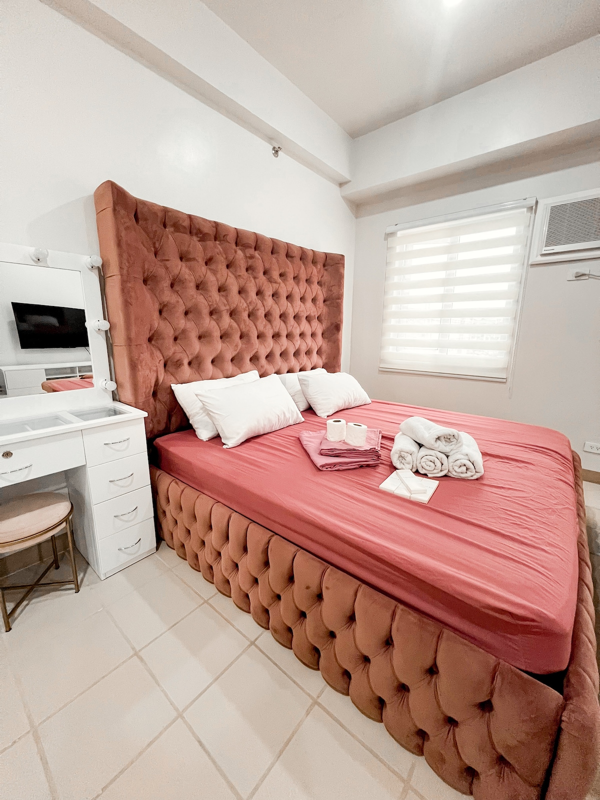 ✔️Queensize-Doppelbett ✔️Arbeits-/Aufenthaltsraum ✔️Luftmatratze ✔️Extra Matratze ✔️Badezimmer mit Duschheizung und Bidet ✔️58-Zoll Smart-Fernseher mit Netflix im Wohnbereich ✔️32-Zoll Smart-Fernseher Netflix im Schlafzimmer 1 ✔️Schnelles Internet, ideal für die Einrichtung von WFH ✔️Kartenspielen/Brettspiel ✔️Buchen ✔️Mini-Karaoke ✔️Esstisch & Stühle ✔️Komplettes Küchen- und Essgeschirr ✔️Espressomaschine ✔️Mixer ✔️Mikrowelle ✔️Kühlschrank ✔️Waschmaschine (nur für Langzeitgebrauch, 5 Tage ⬆️) ✔️Lebensmittelwagen ✔️Zwei Klimaanlagen ✔️Wasserkocher ✔️Reiskocher ✔️Induktionsherd