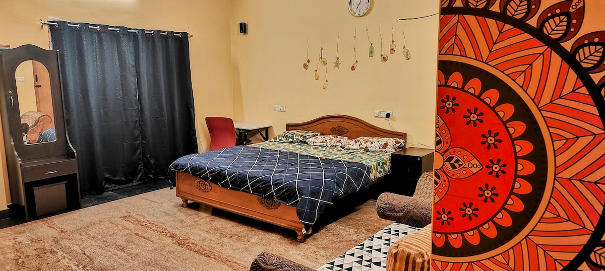 Willkommen in unserem Sarma-Sadan-Zuhause! Du hast die gesamte Unterkunft für dich allein, mit Zugang zu einer funktionalen Küche, einem geräumigen Schlafzimmer und Zugang zum Garten. Entspanne dich hier in dieser ruhigen Gegend, du kannst von zu Hause aus arbeiten oder eine therapeutische Pause einlegen! Wenn du in dieser zentral gelegenen Unterkunft übernachtest, hat deine Familie alle wichtigen Anlaufpunkte ganz in der Nähe – 5 Minuten von der Hauptstraße, der Bushaltestelle und dem Ganga-Krankenhaus entfernt. Auch längere Aufenthalte sind willkommen.