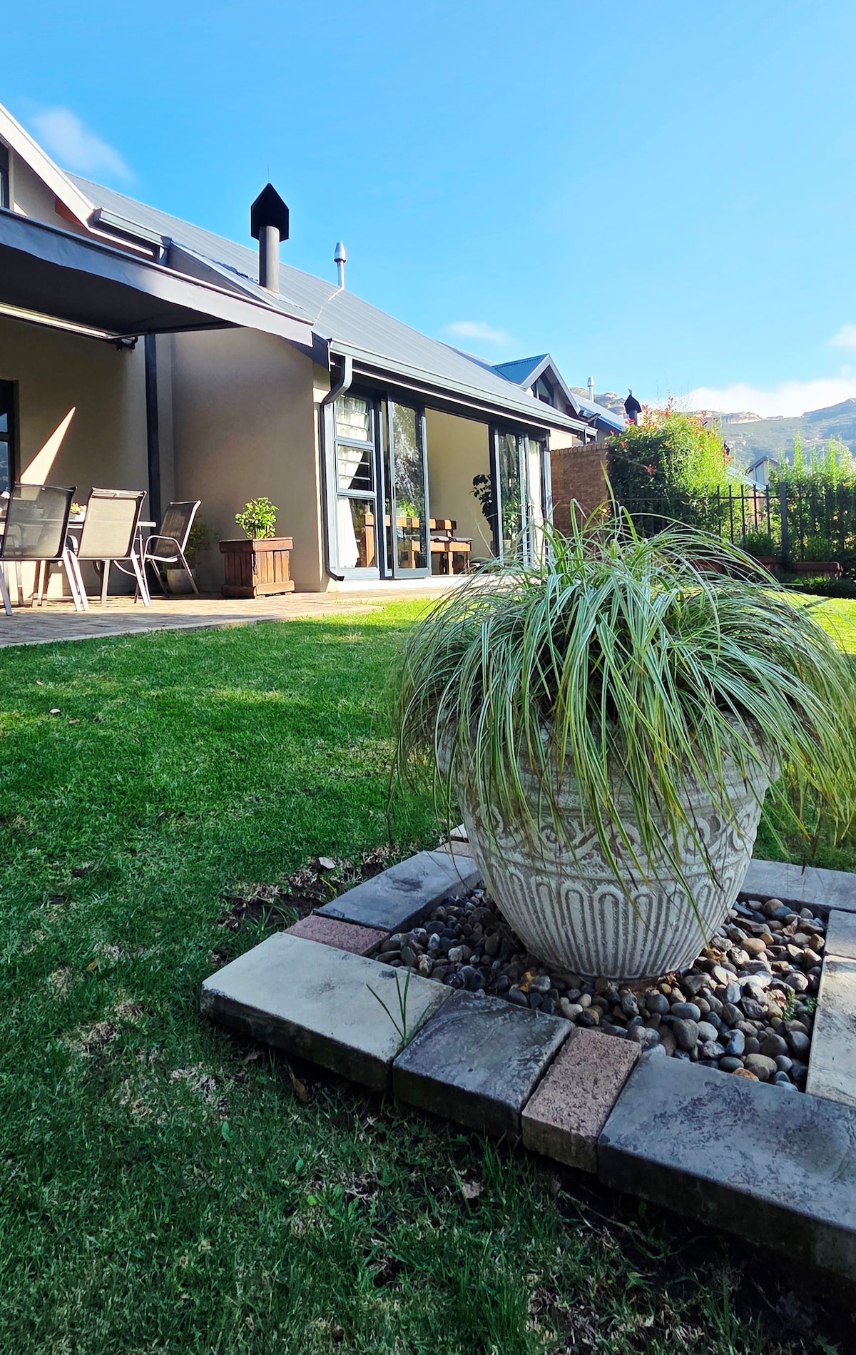 Clarens House ist ein modernes, minimalistisches Haus mit einzigartigen Merkmalen, einem geräumigen, offenen Wohnbereich und kreativen, entspannenden Außenbereichen zum Genießen. Das Haus bietet Platz für 4 Gäste in zwei Schlafzimmern mit eigenem Bad. Die Anordnung ist offenes Schlafzimmer/Badezimmer im Obergeschoss und geschlossenes Badezimmer im Erdgeschoss. Eine Gehminute von Geschäften und Restaurants entfernt. Es gibt einen Innenbraai, der als Kamin fungiert. Smart-TV, DSTV und WLAN sind vorhanden. Zusätzliche Gäste oder Kinder ziehen zusätzliche Kosten an.