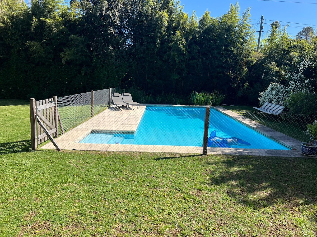 Haus auf dem Land San Carlos. Schöner 1200m2 Garten, eingezäunter Pool, guter Schatten, guter Schatten, Quincho. 3 Schlafzimmer. Ausgezeichneter Zugang von Panamericana km 30. Zwei Restaurants, Sportplätze, Feiertagskolonie