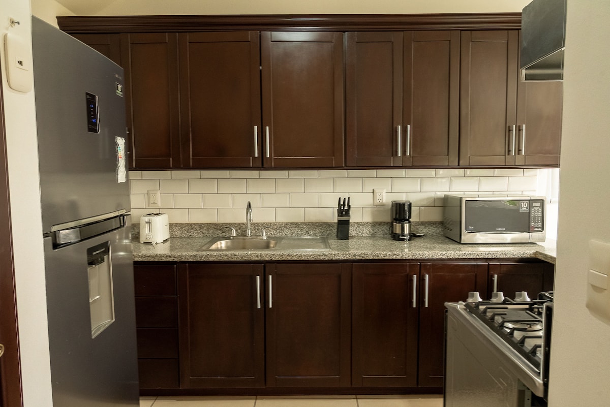 KODU Apartments & Suites befindet sich in Santo Domingo, der exklusivsten Wohngegend von Managua, Nicaragua. Nur wenige Meter von Restaurants, Geschäften, Einkaufszentren, Supermärkten und vielem mehr entfernt. Diese Wohnung verfügt über: - 2 Zimmer - 2 1/2 Badezimmer - Wohnzimmer - Kabelfernsehen - WLAN - Waschmaschine und Trockner - Schreibtisch - Voll ausgestattete Küche - Esszimmer - Pool - Fitnessraum - In der obersten Etage gelegen - Es gibt Treppen in der Wohnung, um zu den Zimmern oder Schlafzimmern zu gelangen.