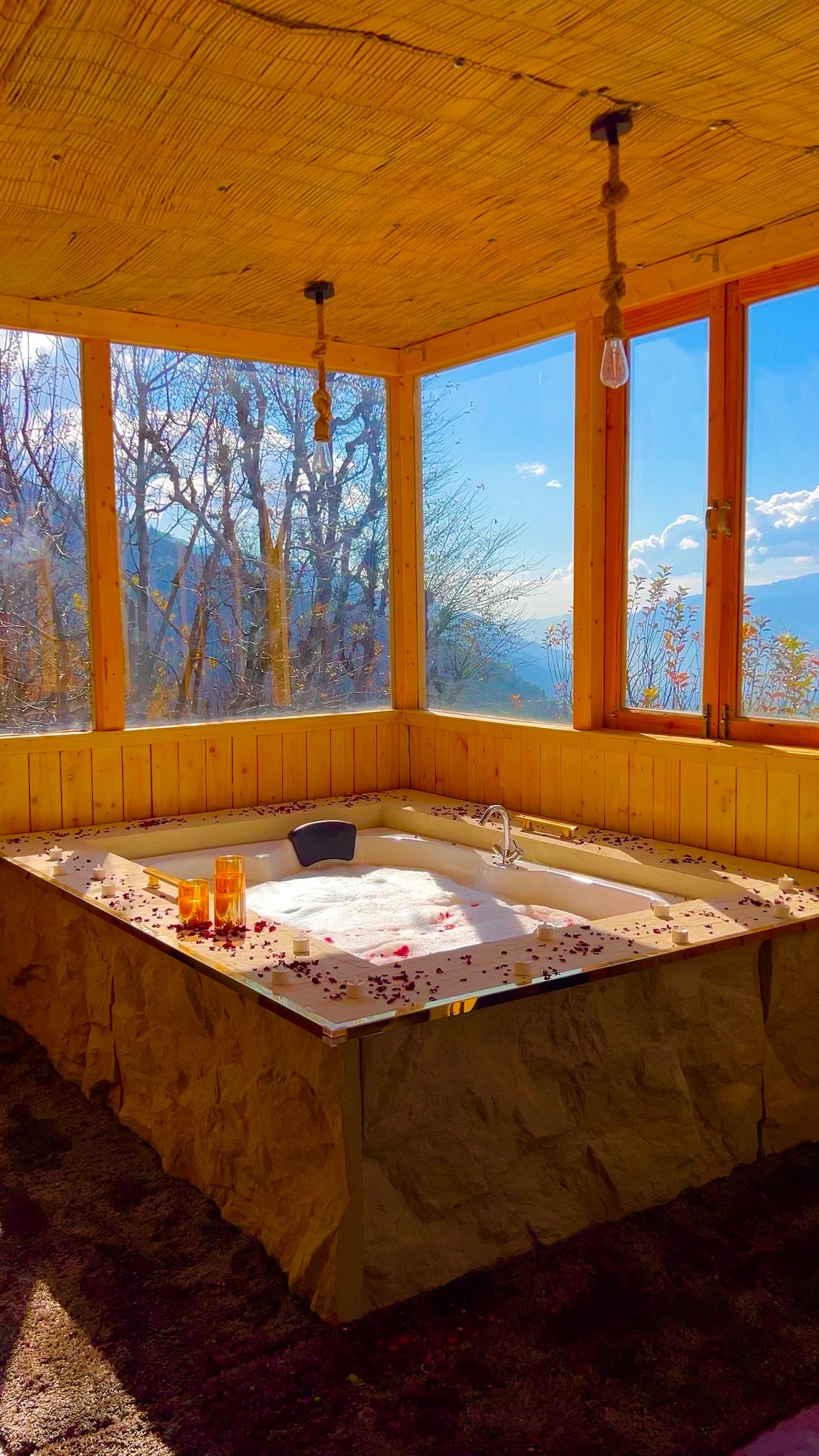 Dieses private architektonische Paradies wurde von seinem europäischen Schöpfer Alain Pelletier erbaut und strahlt in jedem Detail Charakter aus. Entdecke hoch auf einem privaten Himalaya-Hügel, abseits der Hauptstraßen, ein einzigartiges Ferienhaus, das eine Flucht, tiefe Ruhe und Einsamkeit bietet. Dies ist ein komplettes handgefertigtes Anwesen für Ihr Erlebnis. Top-Highlights: * Voll ausgestattete Küche mit Herd und Backofen, * Glaskamin. * Balkon der Träume * Vorderer Rasenbereich * Zugang zu Wäldern und Bächen zu Fuß * Architektur aus Stein und Holz