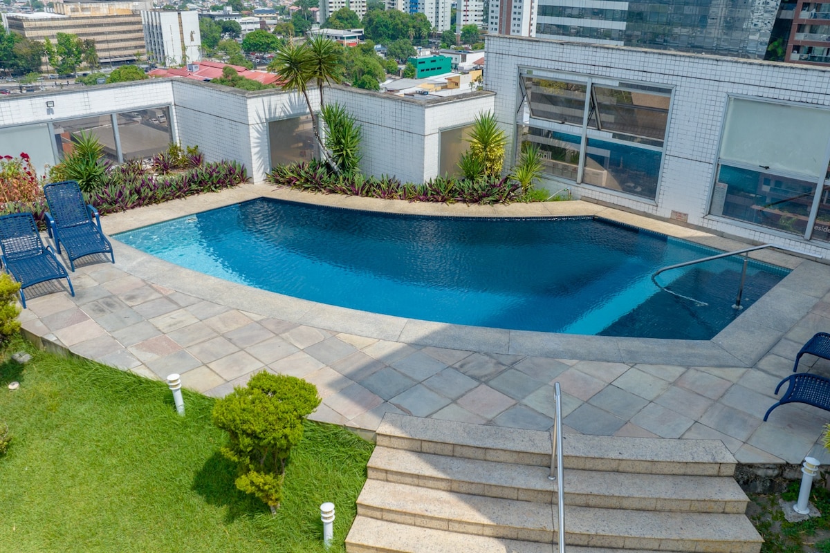 Moderne Wohnung im Intercity Manaus, perfekt für Freizeit oder geschäftliche Zwecke. Es bietet Platz für bis zu 3 Personen mit Komfort, WLAN, Minibar und Bettwäsche. Panoramablick auf die Stadt und Zugang zum Pool, Fitnessraum und Restaurant. Strategische Lage: in der Nähe von Manauara Shopping, Industrial District und der Innenstadt. Wir bieten alle 5 Tage eine kostenlose Reinigung an. Wir kommen, um das Erlebnis zu erleben, als Bewohner zu bleiben, mit Hotelstruktur!