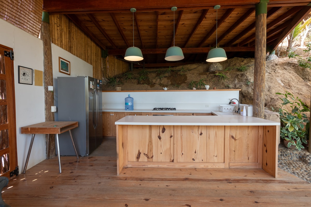 Im Naturhaus auf dem Hügel, zweite Reihe, in exklusiver Gegend von Las Pocitas; spektakulärer Blick auf den Ozean. Besondere Architektur mit lokalen Materialien, 400 Quadratmeter Grundstück, voller Pflanzen auf 4 Ebenen von natürlich geformtem Boden auf dem Hügel. Voll ausgestattete Küche, Garten mit Aussicht, 2 Zimmer, 2 Badezimmer, mehrere Orte zum Lesen, Entspannen und Spüren der Meeresbrise, kurze 30 Meter zu Fuß zum Meer. Glasfaser-Hochgeschwindigkeits-Internet. Wir haben 2 nette Katzen in der Natur großgezogen.