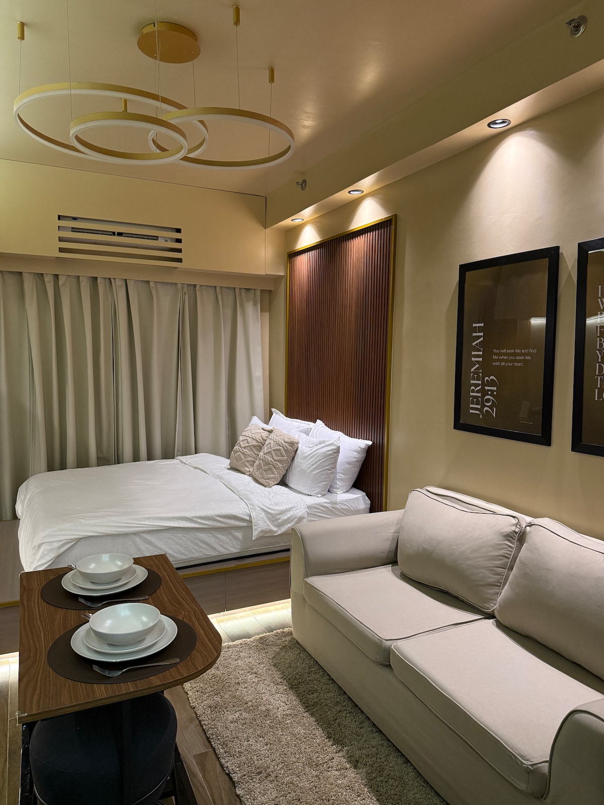 Erleben Sie modernes Wohnen im Hotelstil in den Premier SMDC Fame Residences, Mandaluyong City. Dieses stilvolle, voll möblierte Studio verfügt über ein bequemes Bett, eine Klimaanlage, schnelles WLAN, einen Smart-TV mit Netflix, Karaoke, eine Warm-/Kaltwasserdusche und eine Küchenzeile. Genießen Sie den Pool, die Sicherheit rund um die Uhr und den begehbaren Zugang zu SM Megamall, MRT-3 Shaw und Shangri-La. Nur wenige Minuten von Manilas wichtigsten CBDs entfernt – BGC, Ortigas und Makati. Perfekt für Geschäftsreisen, Urlaubsreisen oder mobiles Arbeiten. Komfort und Komfort in einer großartigen Lage!
