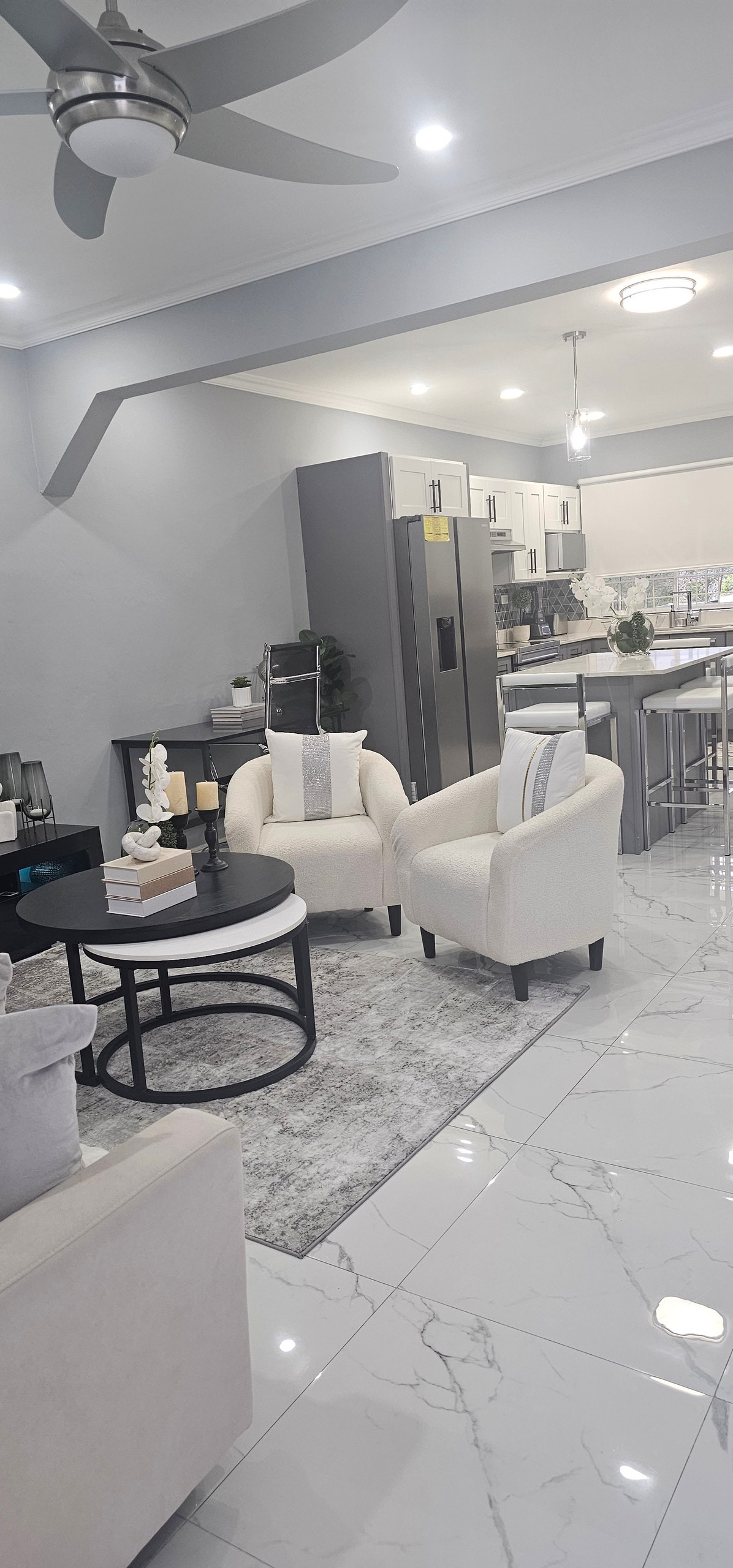 Our lovely Home is nestled in the Cool Central hills of Mandeville. Its located in a secure gated complex in Wards Avenue, Mandeville. Featuring an open-concept layout with ample natural light, sleek furnishings, and thoughtfully curated décor. It offers one king bedroom and a futon (sofa bed) to sleep one, 1 bathroom, kitchen, balcony, dining and living areas. The space is designed to feel airy and inviting, soft textiles, and warm lighting that enhance its welcoming atmosphere.
