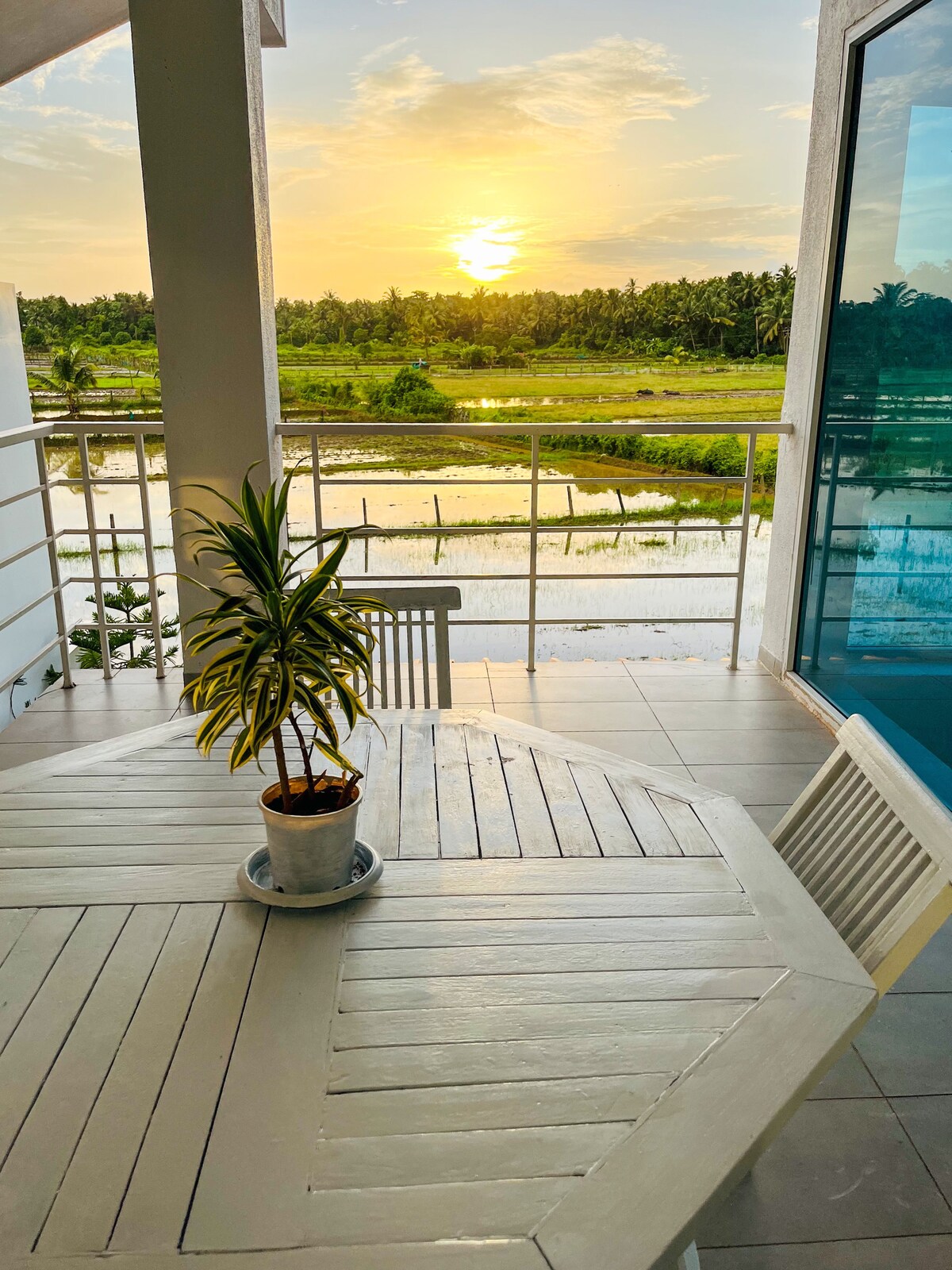 Mit Blick auf Reisfelder und üppig grüne Hintergründe befindet sich diese ruhige Wohnung im Herzen von Nord-Goa. Nur einen Steinwurf vom Strand und dem Wahnsinn entfernt, aber in der Nähe von Mutter Natur. Diese Wohnung bietet das Beste aus beiden Welten und ist für alle Altersgruppen und zu jeder Zeit geeignet. Sie befindet sich im ersten Stock und bietet einen Blick auf den Swimmingpool. Die Aussicht ist unübertroffen. Es handelt sich um eine vollständig eingerichtete Wohnung für den Komfort und das Vergnügen der Gäste.