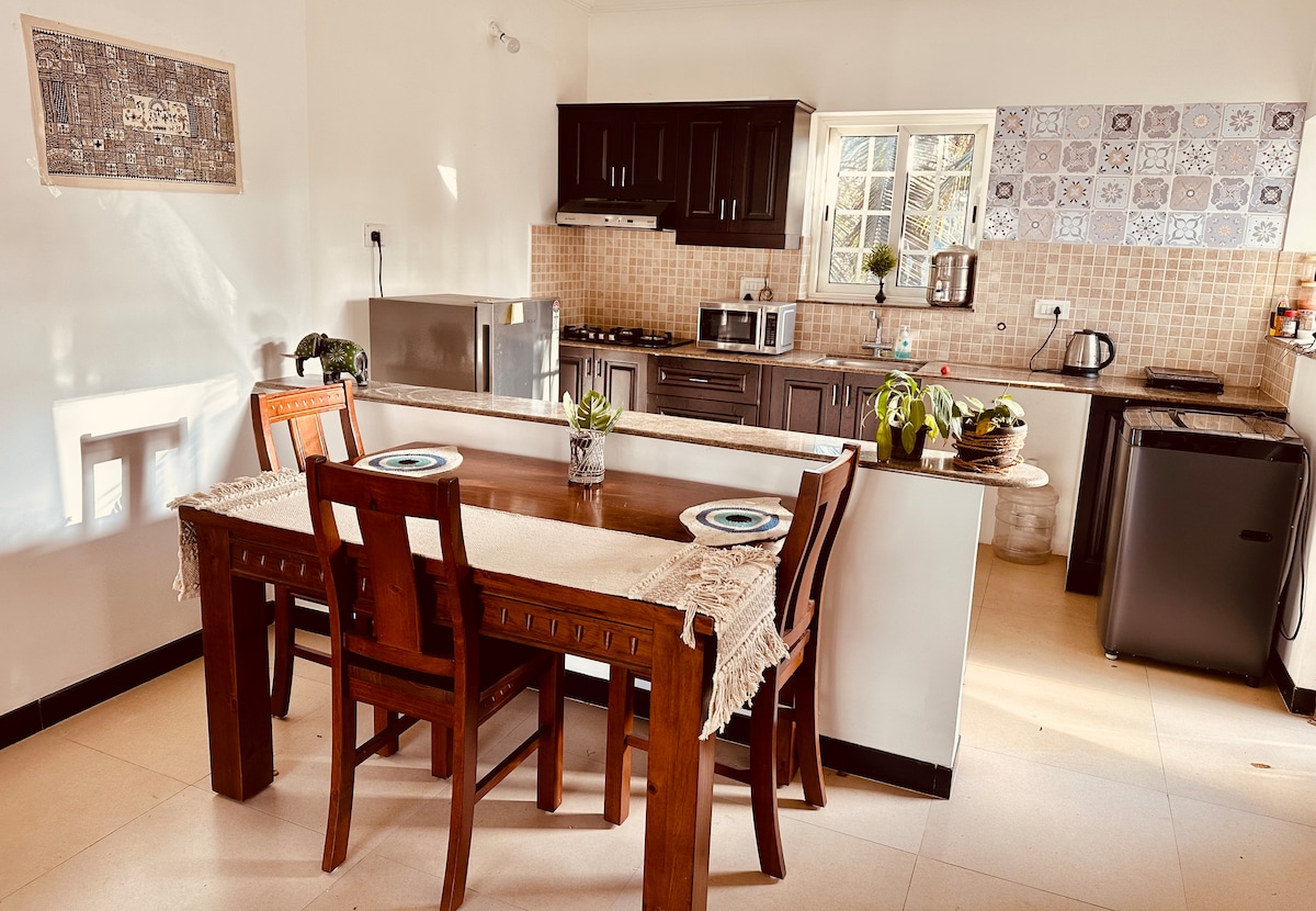 Entdecke „Happy Home“ bei Escavana Stays, umgeben von beliebten Hotspots wie Thalasa & Hosa, ist diese ruhige Wohnung dein Tor zur Goan Coastline. Eingebettet in einen sicheren, geschlossenen Komplex bietet Happy Home Komfort auf Schritt und Tritt. Du bist nur wenige Minuten von Apotheken, Geldautomaten, Benzinpumpen, Supermärkten, Weinläden und lokalen Restaurants entfernt. Im Inneren befinden sich zwei stilvolle Schlafzimmer für eine komfortable Nachtruhe, ein gemütliches Wohnzimmer, das in einen Essbereich fließt, und eine moderne Küche mit modularen Armaturen.