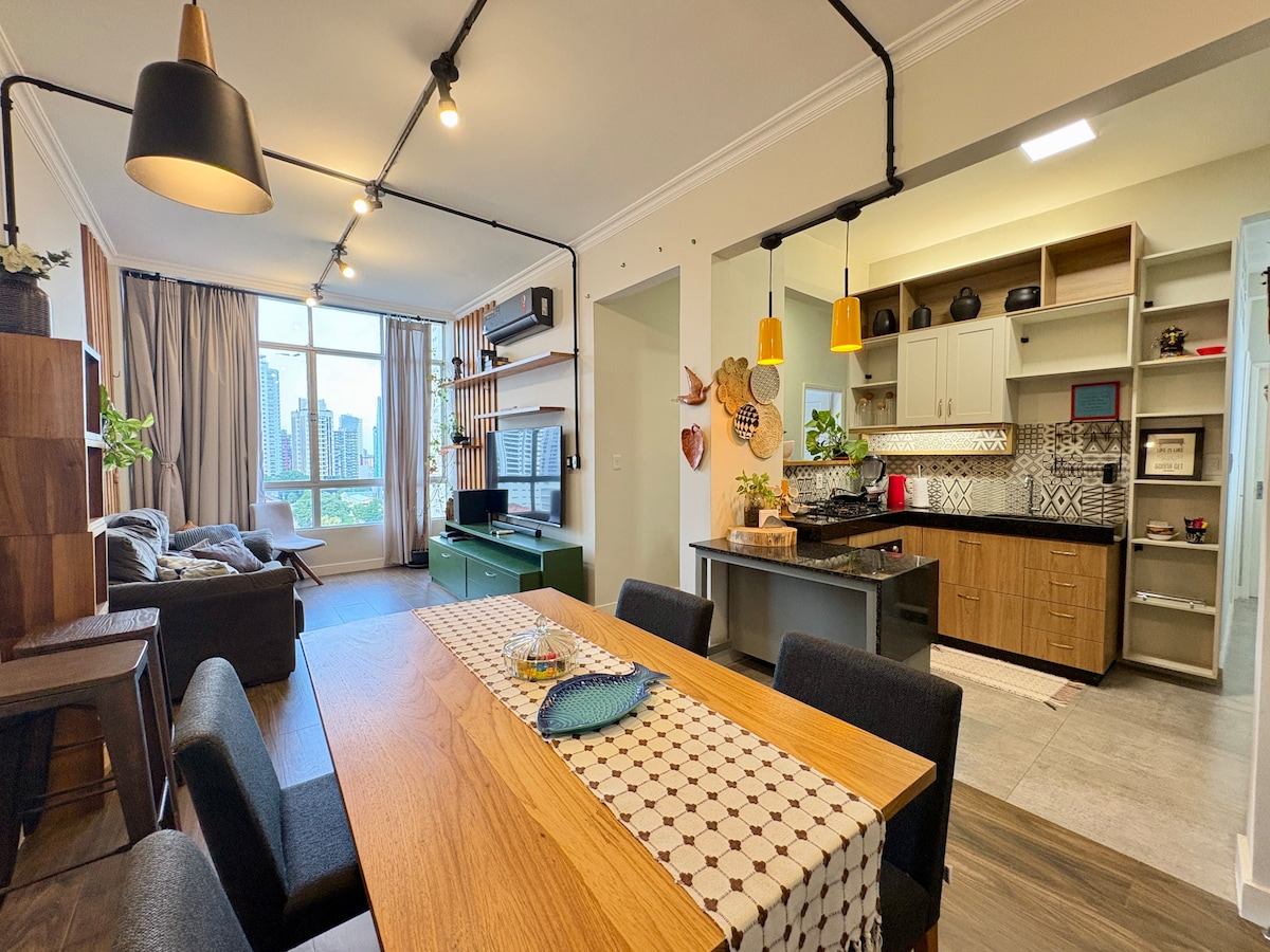 Modern 3-bedroom apartment in Umarizal, Belém — just one block from Nova Doca. Stylish décor, 82m², living/dining area, full kitchen, high-speed Wi-Fi, and air conditioning. Digital lock with self check-in, covered parking, and 24h security. Close to Boulevard Shopping, restaurants, and the city’s best cafés.