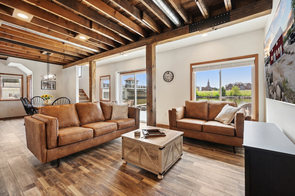 Located directly on the East Twin River & 3 blocks from Neshotah beach, Lake Michigan. Food, drinks & shopping walkable. Newly renovated riverfront property with upgrades, new appliances, smart tvs, WiFi, and 2 custom showers. Plenty of paved parking, riverfront dock for fishing and biking/hiking trails are a walk away. The property is 90 minutes from Milwaukee, 25 miles from Whistling Straits, as well as the Oshkosh EAA & only 40 miles from the 2025 NFL Draft at Lambeau Field, Green Bay.