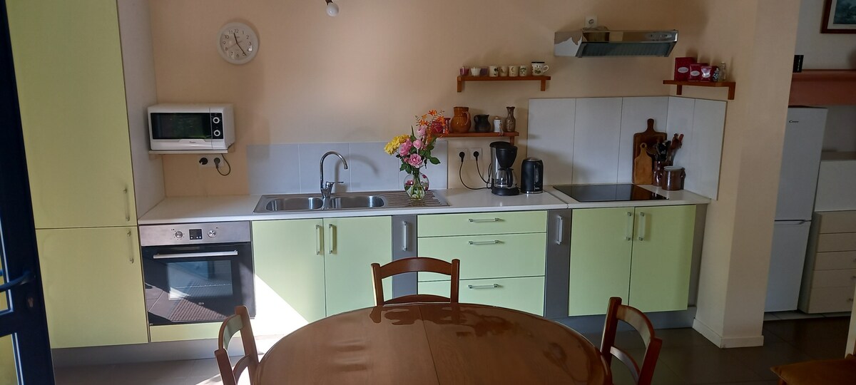 Ruhiges Haus am Ende einer Sackgasse, die vom Wald begrenzt wird. Es verfügt über einen privaten Parkplatz, die Küche ist voll ausgestattet mit einem Erkerfenster mit Blick auf die Terrasse. Großer Tisch in der Küche, der zum Wohnzimmer hin offen ist. Elternschlafzimmer im Erdgeschoss mit ebenerdiger Dusche, separater Toilette, 2 Wohnzimmer ( ein Kamin und ein Fernseher), 2 Schlafzimmer im Obergeschoss mit einem Doppelbett und 2 Einzelbetten. Jedes verfügt über ein eigenes Bad + WC für maximalen Komfort. Whirlpool und Trampolin