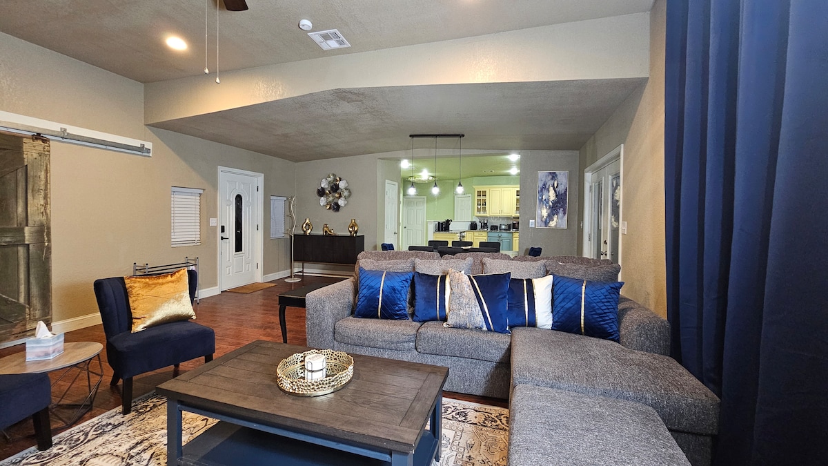 In einem brandneuen Viertel angesiedelt. Großer eingezäunter Hinterhof mit einer abgeschirmten Veranda, die ein Liegesofa und einen Fernseher umfasst. Ethernet-Ports in jedem Zimmer. 4k-Streaming-WLAN. Das Spielzimmer verfügt über einen Liebes-Sessel mit zwei 55-Zoll-Fernsehern sowie jedes Spiel. 775 Bücher verteilt im Wohnzimmer. Die Betten sind geneigt. Das Hauptbett ist ein Kingsize-Bett mit Sleep Number. Das Wohnzimmer verfügt über einen Sektionalbereich mit Liegesesseln und eine Chaiselongue, auf der 3 Personen schlafen können. Es gibt auch eine Ersatz-4-Zoll-Matratzenauflage, die perfekt für Kinder zum Schlafen ist.