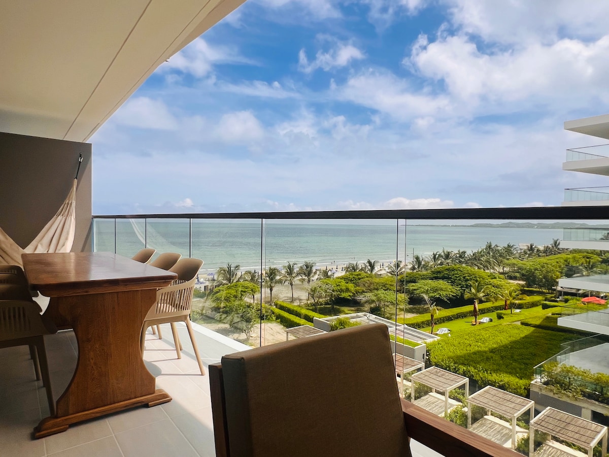 Enjoy incredible ocean views in this spacious 76 m² apartment, with a confortable livingroom, located on the beachfront in the exclusive Manzanillo del Mar neighborhood, just 20 minutes from Cartagena's center. Relax in our 4 pools, 2 jacuzzis, gym, Turkish bath, and beach access in a quiet, secure, and elegant condominium. Ideal for couples, families, or business travelers seeking security, comfort, and serenity, without missing any of Cartagena. Book now or write to me for more information!
