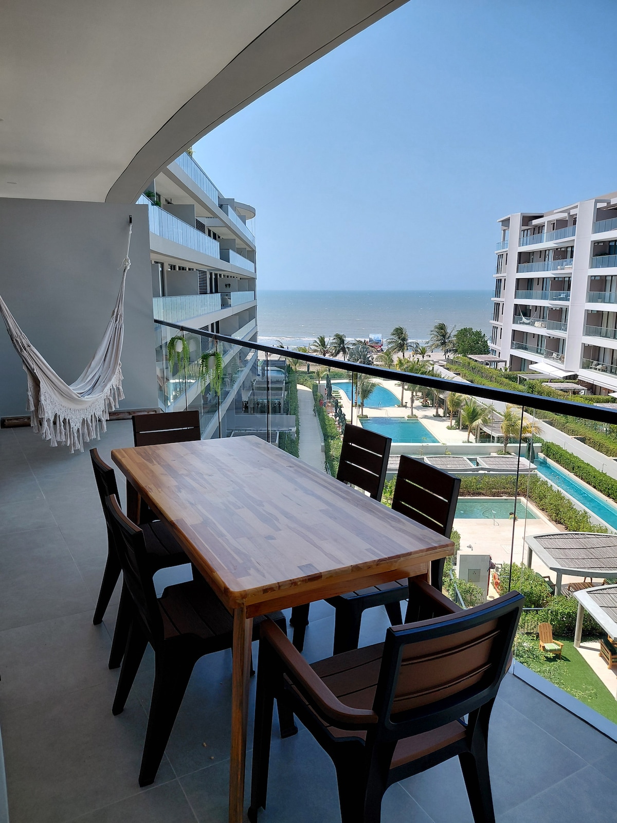 Oceanfront apartment in Morros Kai, perfect for short vacations or monthly stays in Cartagena. Modern spaces, private balcony with ocean view, high-speed WiFi, air conditioning and a fully equipped kitchen. Ideal for couples, families, or remote workers. Enjoy direct beach access, pool, and a peaceful location just minutes from the airport. ¡Discounts available for 7+/28+ day stays!