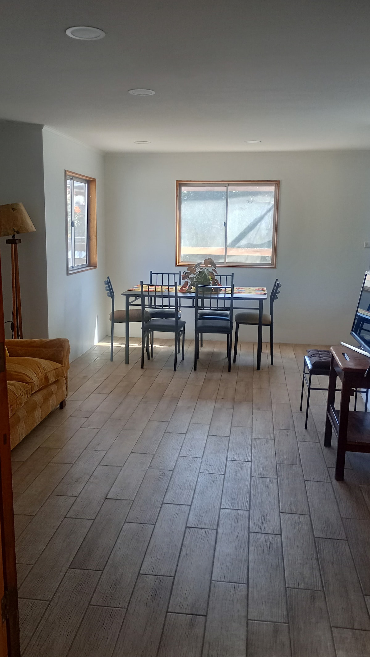 Minidepartalento monoambiente para 4 personas (2 Dultos y 2 niños). Incluye: WiFi- Tv - Estacionamiento - áreas comunes lavandería. lugar amoblado. 1 cama matrimonial y 1 cama nido para niños. tv - refrigerador - cocina amoblada. Relájate con toda la familia en este alojamiento, lugar tranquilo y seguro.