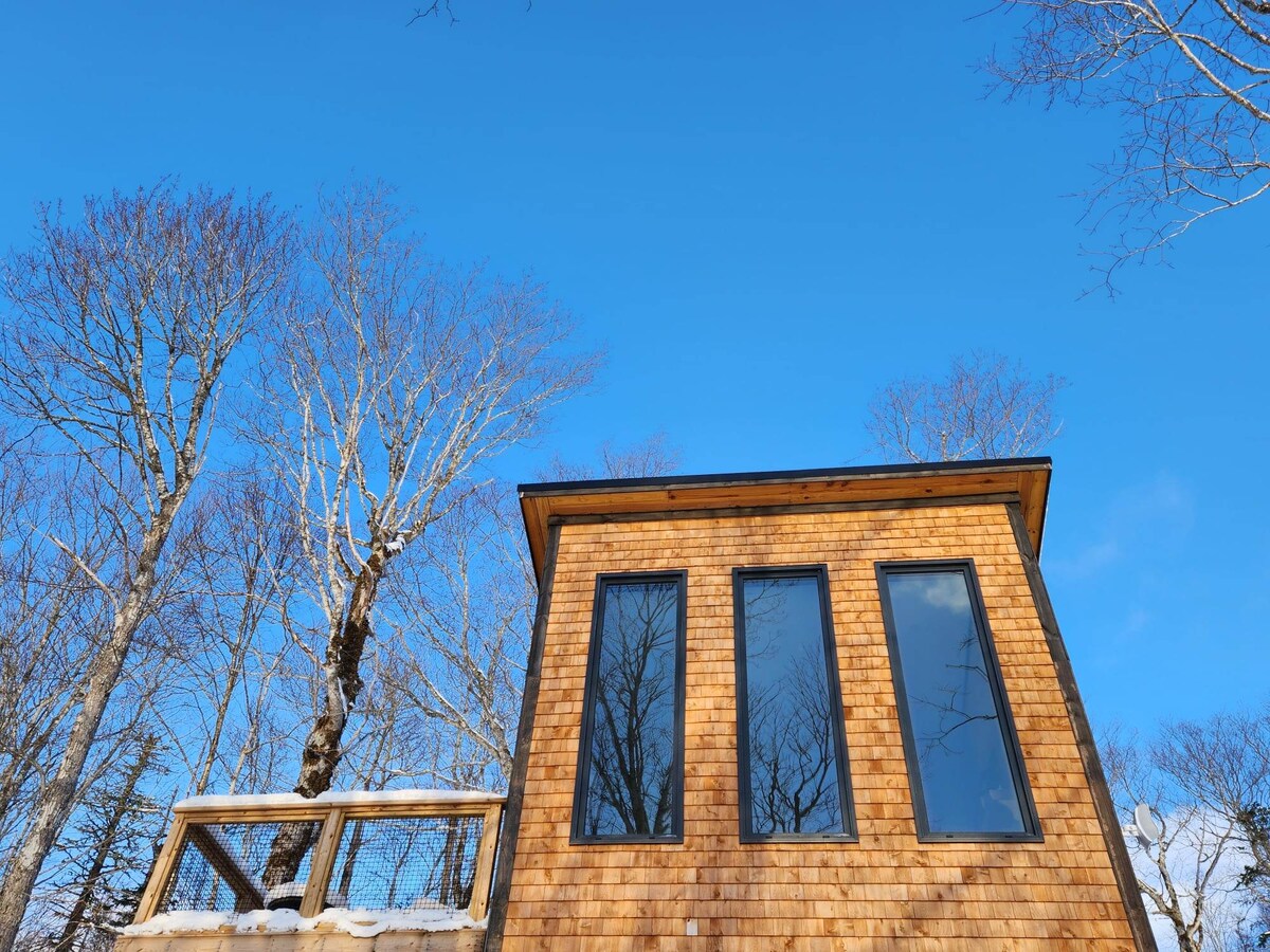 Neu erbautes Chalet, am Berghang gelegen, mit Blick auf das Margaree Valley. Mit hohen Decken und riesigen Fenstern bietet der Raum Gästen eine helle, luftige und gemütliche Atmosphäre. Draußen bietet eine 200 Quadratfuß große Veranda Platz, um frische Luft, Sonnenschein, ein gutes Buch und einen unglaublichen Blick auf die Landschaft zu genießen. Wenn du nicht die natürliche Schönheit des 14 Hektar großen Grundstücks genießt, bietet das Chalet auch professionell gestaltete Innenräume, voll ausgestattete Küchen/Grill, SMART-TV, kostenfreies WLAN, einen elektrischen Kamin, Heizung und Klimaanlage. Ohne unmittelbare Nachbarn sind unsere Chalets von Wald und Ackerland umgeben und der perfekte Ort, um sich zu entspannen und zu erholen, während du das darunter liegende Tal überblickst. Es ist die perfekte Balance zwischen allen Annehmlichkeiten von zu Hause und der Möglichkeit, eine ruhige Zeit zu genießen. Unabhängig davon gibt es auf 14 Acres viel Platz, um sich die Beine zu vertreten! Die Gastgeber stehen dir während deines Aufenthalts bei uns per Anruf/SMS/E-Mail oder Airbnb-Nachricht zur Verfügung. Wenn ein Problem auftritt, wird ein Teammitglied vor Ort sein, um das Problem so schnell wie möglich zu lösen. Kodys Unterkunft liegt im Margaree Valley, Nova Scotia, Kanada. Ungefähr 6 Kilometer vom Cabot Trail entfernt, ist dieser Ort der perfekte Ausgangspunkt für deine Reise rund um den Trail oder um West- und Zentral-Cape Breton. Unsere Nähe zu Inverness, Baddeck, Cheticamp und Ingonish machen Tagesausflüge von dieser Basis aus einfach. Als letzte zivile Adresse an einer öffentlichen Straße sind wir das ganze Jahr über mit dem Kraftfahrzeug erreichbar. Während der Wintermonate ist unser Standort auch mit dem Schneemobil und im Frühling, Sommer und Herbst mit dem Geländefahrzeug gut erreichbar.