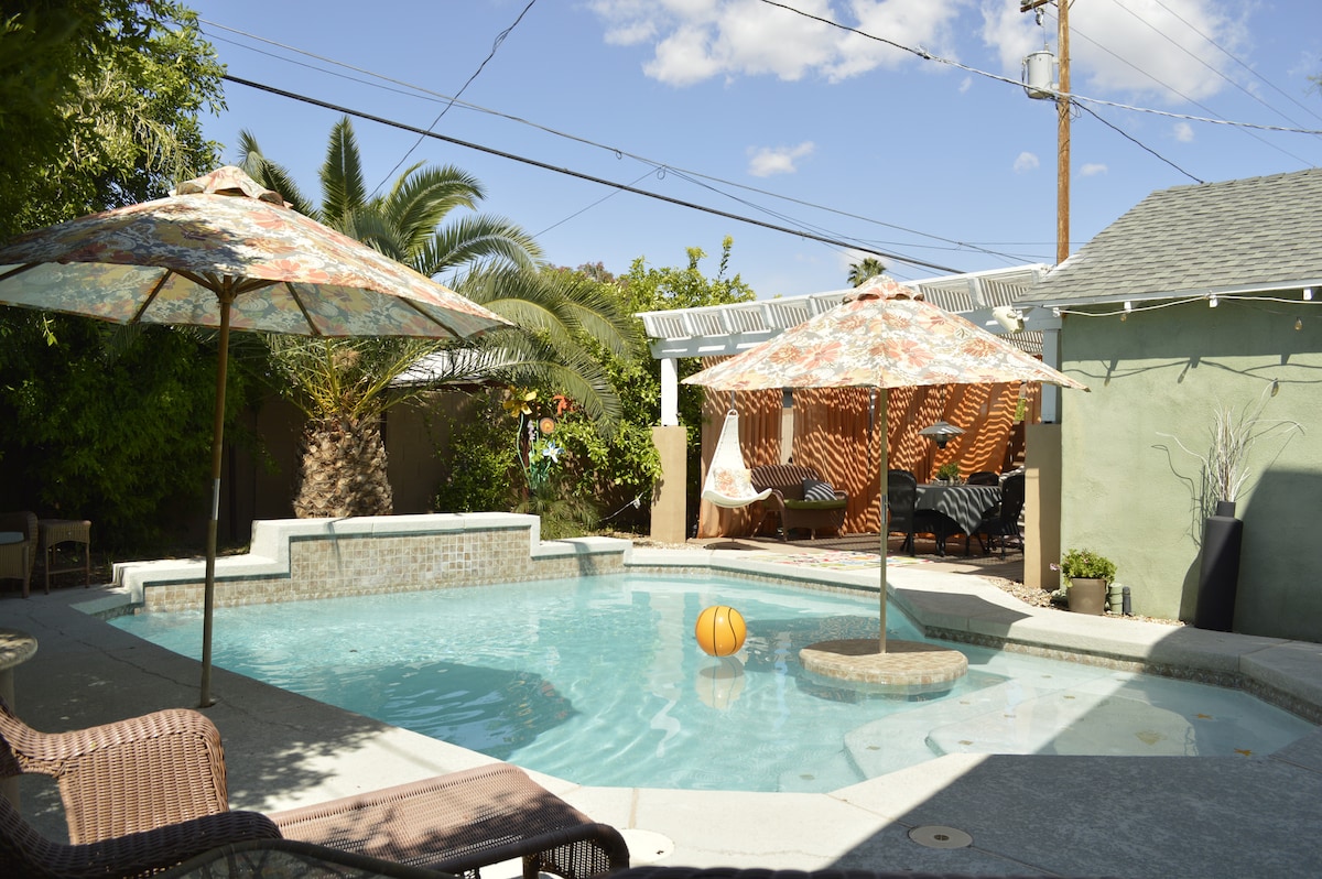 Dieses Gästehaus aus den 1930er Jahren befindet sich im Herzen des historischen Viertels Coronado in einem grünen Innenhof in der Sonora-Wüste. Das vielfältige Viertel Coronado ist eine vielseitige Mischung aus kleinen Bungalows entlang einer historischen Straßenbahnlinie. Komm und sieh, warum Coronado die höchste Konzentration an Künstlern, Architekten, Designern, Köchen, Stylisten und Kreativen aller Viertel in Phoenix hat. Superbowl 2023: SuperBowl Experience Hance Park – 20 Minuten zu Fuß / 4 Minuten Fahrt SuperBowl Stadion – 20 Minuten Fahrtzeit