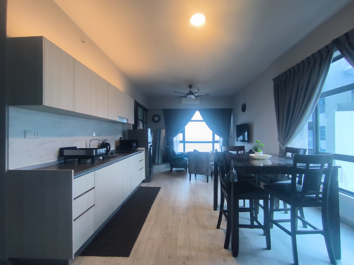 Welcome to Bayview Vacation Home! A spacious & comfortable 3 bedrooms home with bedding for 7 persons. Strategically located (only 5-8 minutes drive to city centre & 400 meters to the seaside) with beautiful Likas Bay & Mt. Kinabalu view. Fully furnished, clean & housed with 2-storey commercial lots consist of restaurants, cafes, gift shops, superstore etc, an added convenience to your stay. Free airport pickup (min 2 nights stay) from KK Int. Airport to the apartment for arrival before 11.30pm.