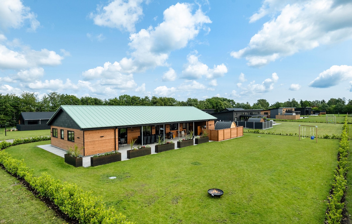 Modernes Ferienhaus in einer perfekten Kombination aus Komfort, Aktivitäten und malerischer Lage. Es gibt Platz für Entspannung und unterhaltsame Momente - alle umgeben von einem abgelegenen Grundstück, nur 500 Meter vom Strand entfernt. Nutze ein Wildnisbad, einen Whirlpool, eine Sauna oder Aktivitäten wie Tischfußball, Darts oder Brettspiele. Im Freien können aufgrund der großen überdachten Terrasse bei jedem Wetter gute Momente im Freien genossen werden. Für die Jüngsten gibt es einen Sandkasten, ein Trampolin, einen Spielturm und eine Rutsche.