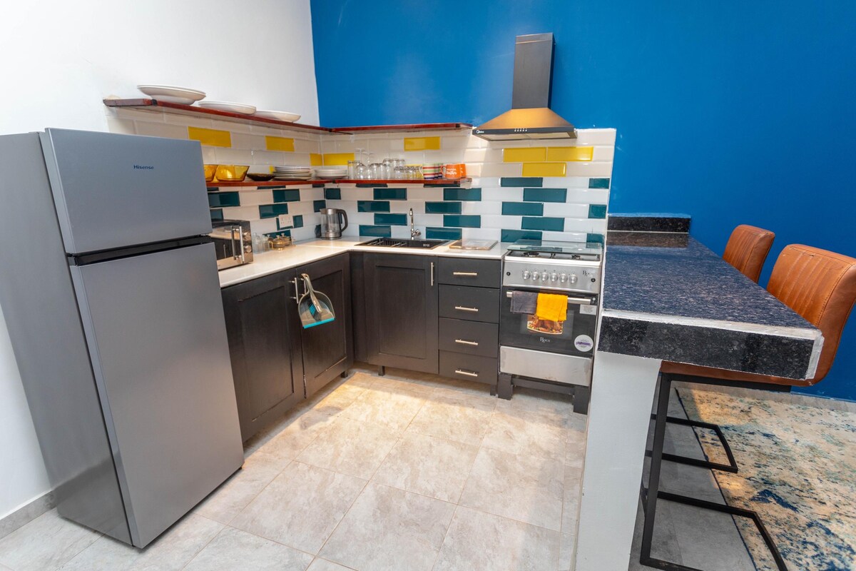 Welcome to "AFRIKAN-LUXE" ⭐⭐⭐⭐⭐ A luxurious accommodation that blends the Afrikan aesthetic with contemporary elegance; designed for those who appreciate the art of elegant living. This 3-bedroom 3-bath condo offers a peaceful retreat with all you'll need for a comfy stay in the Gambia! The space is central to everything, so you will not miss a beat! You are within minutes of beaches, the Senegambia strip, Turn Table, the airport, and all of the local dining and nightlife your heart desires.
