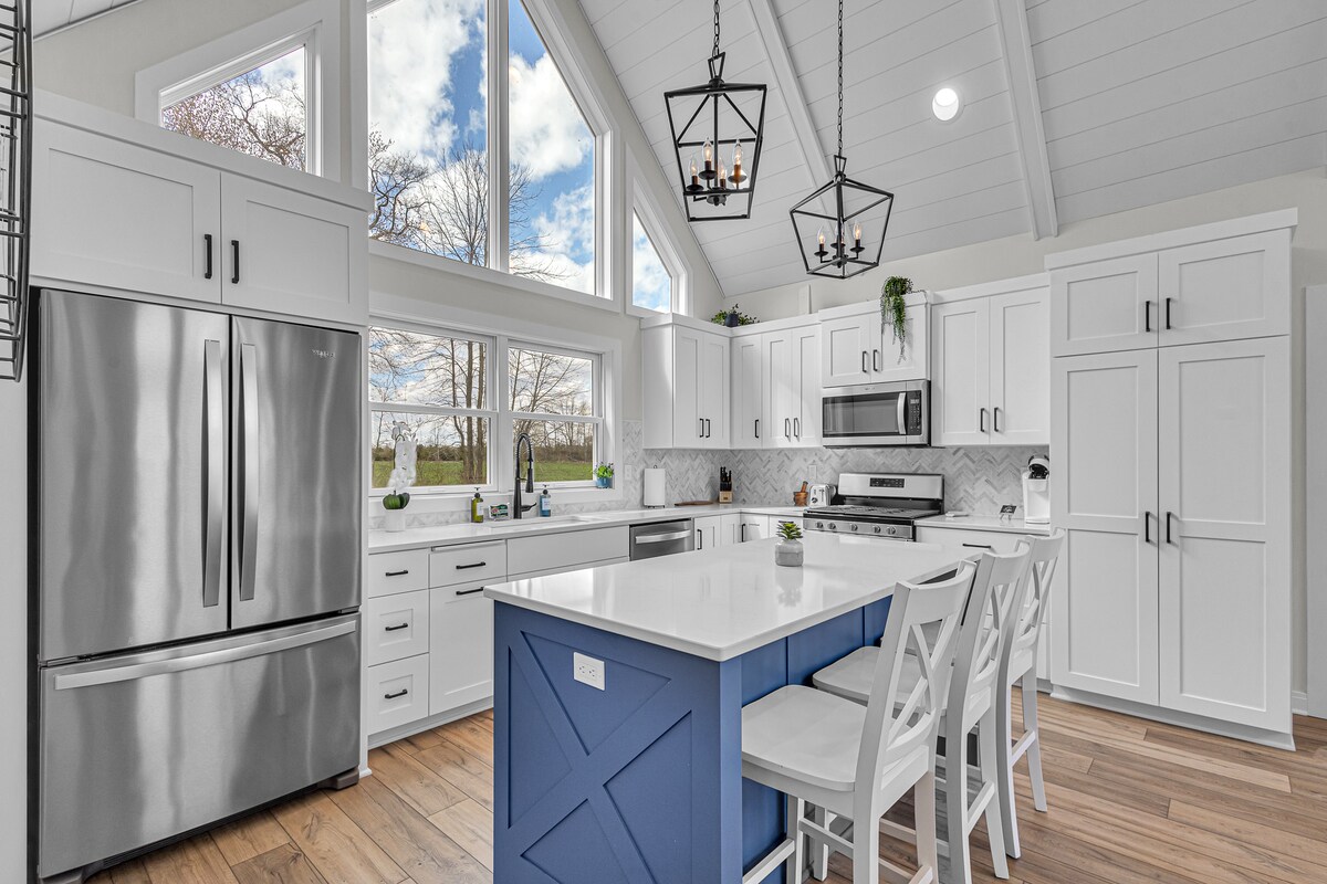 Wir freuen uns, unser von einem Architekten entworfenes modernes Seehaus in der Stadt Clay Banks vorzustellen! Genieße die Ruhe, den atemberaubenden Blick auf den Michigansee von einer abgelegenen hinteren Terrasse und die großen Fenster in jedem Zimmer des Hauses. Genieße das langsamere Leben, Annehmlichkeiten am Wasser, einen Nachbarschaftspark mit Wanderwegen und die Magie des Sees. Du wirst Wasserspaß für die ganze Familie, eine riesige hintere Terrasse mit Essbereich für 8 Personen, einen Lounge-Bereich im Freien und eine Feuerstelle in der Nähe des Wassers genießen.