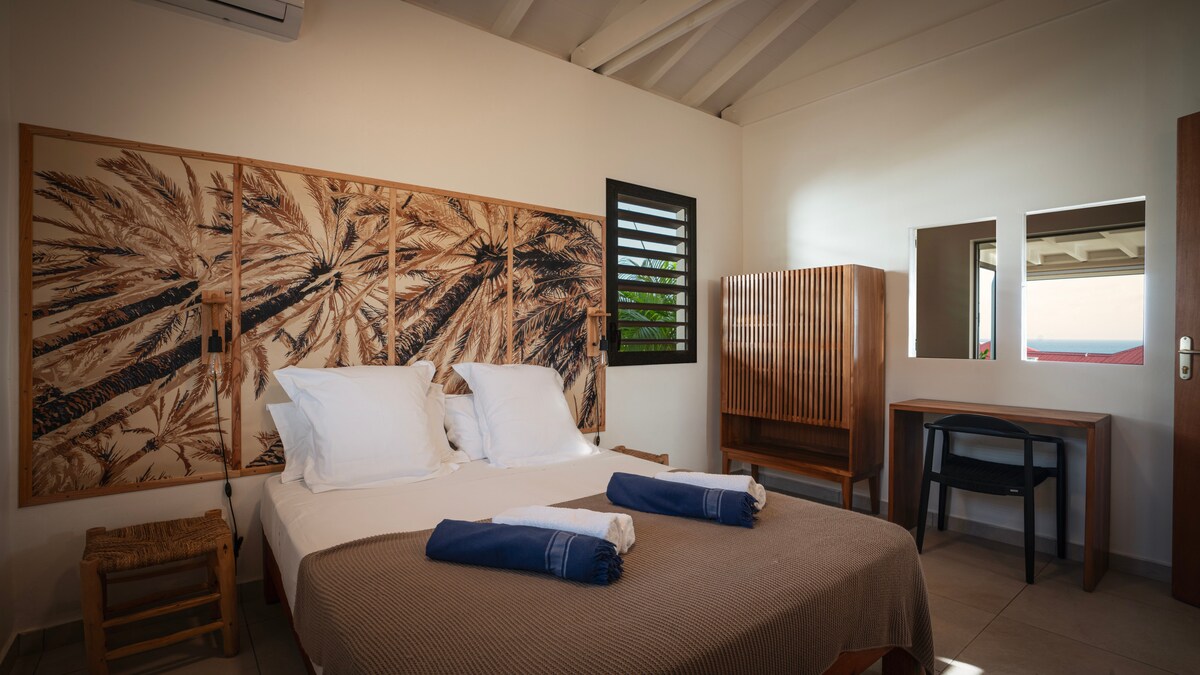 Neues Haus 2 klimatisierte Zimmer und Luftmixer, 2 separate Badezimmer mit italienischer Dusche, 2 WC, voll ausgestattete Küche außer Geschirrspüler, Fernseher, Highspeed-Internet, überdachte Terrasse von 70 m2 mit Meerblick und Pool. Großer Grill Für 2 weitere Personen bieten wir Ihnen auf demselben Grundstück einen unabhängigen Bungalow mit allem Komfort, Meerblick für 2 Personen. www.airbnb.com/rooms/1117232492468227333?source_impression_id=p3_1718008577_P3k9EC593h3Hbo16