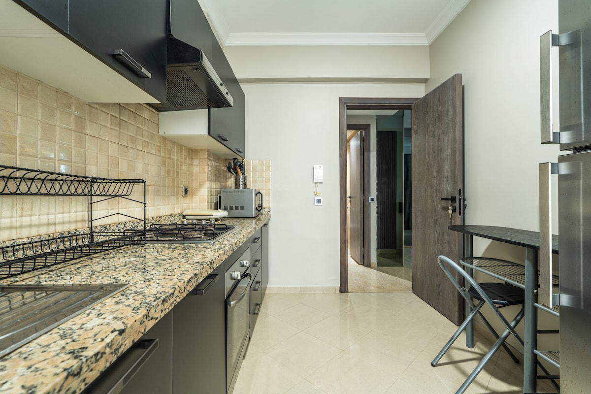 Genießen Sie das raffinierte Leben im The Corniche Escape – einer ruhigen und eleganten Wohnung mit 2 Schlafzimmern an der Corniche von Casablanca, mit Blick auf das Meer und in der Nähe der Hassan-II.-Moschee. Ideal für Geschäfts- oder Urlaubsreisende, bietet es eine helle Lounge, Premium-Bettwäsche, eine voll ausgestattete Küche, Gartenblick, Highspeed-WLAN und sichere Parkplätze - alles in einer modernen, gehobenen Strandresidenz