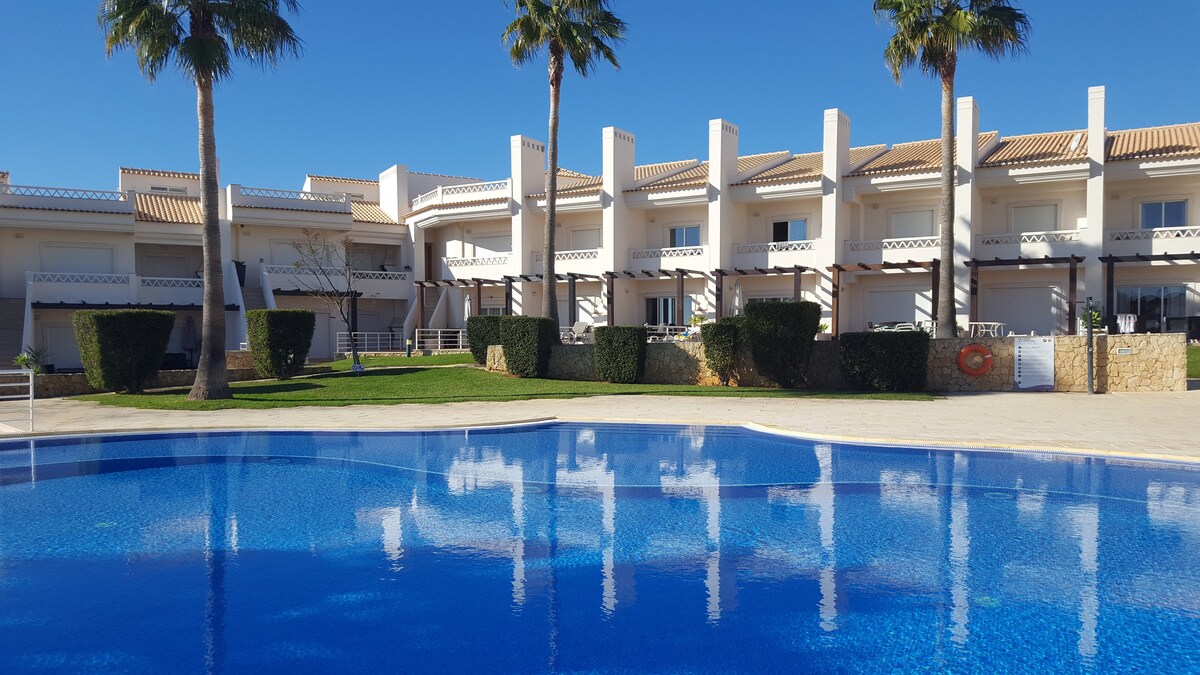 Fully equipped studio apartment with a sea view. Private condominium less than a 10-minute walk from the beach, supermarket, restaurants, and bars/clubs in the city center. With a fully equipped kitchen, enjoy a relaxed breakfast with a sea view. 3 pools, tennis courts, and green spaces.