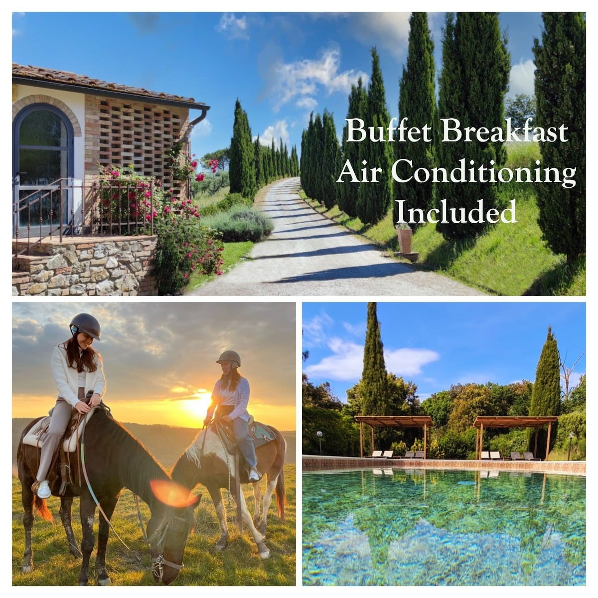 Nestled among Tuscan olive groves between Volterra and San Gimignano, The Land Before Time – Quad & Saddle Retreats offers 4 Green Domes with private jacuzzi, en-suite bathroom, air conditioning and Wi-Fi. Enjoy breakfast each morning in the Cupola Lounge with stunning views. During your stay, experience horseback rides through scenic trails, quad tours to discover hidden Tuscany, or simply relax under the starry sky.