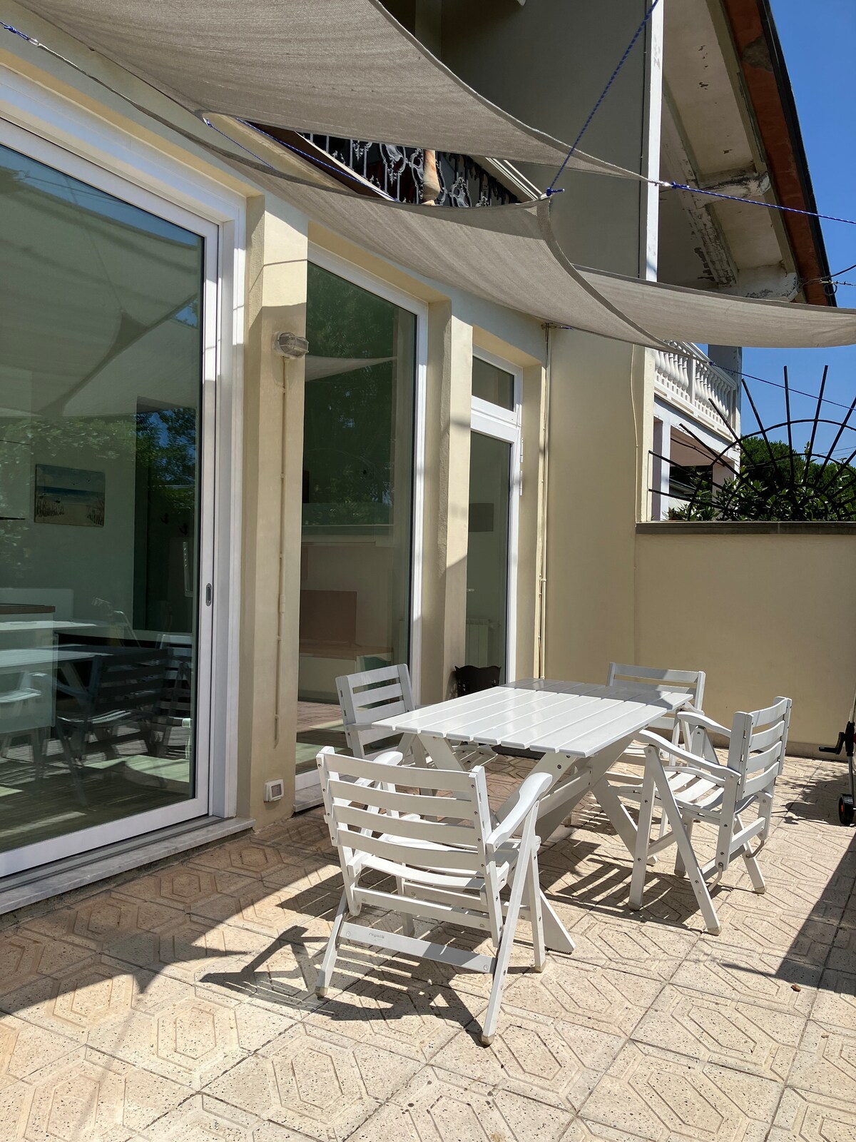 Willkommen in unserer Ferienwohnung in Marina di Massa. Sie befinden sich nur 150 m vom Sandstrand des Tyrrhenischen Meeres entfernt und können einen Aperitif oder Kaffee auf dem Balkon mit atemberaubendem Blick auf die majestätischen Apuanischen Alpen genießen Mit kostenlosem WLAN, Klimaanlage und der Nähe zu vielen Sehenswürdigkeiten wie Forte dei Marmi, Lucca und den 5Terre bietet unsere Wohnung eine bequeme und komfortable Basis für Ihr Küstenabenteuer Sie haben auch einen privaten Parkplatz Buchen Sie jetzt Ihren Urlaub