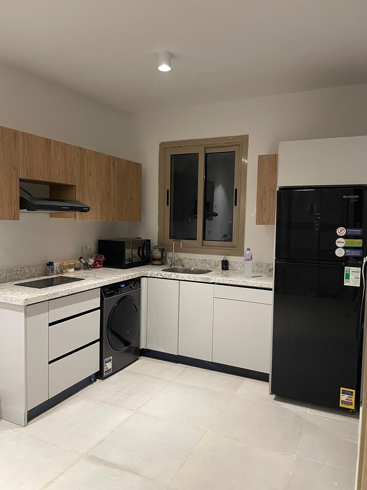 Take it easy at this unique and tranquil getaway.hotel one bedroom apartment with 2 beds and a living space with confi sofabed and a kitchen Relax in this bright hotel apartment featuring 2 beds and a comfy sofa bed, perfect for families or small groups. Enjoy a full kitchen, private bathroom, washer, AC,and Smart TV. Located in Al Alamein Residence, just minutes from the beach, restaurants, and cafés. Ideal for long or short stays with all the comforts of home.enjoy a free pool access