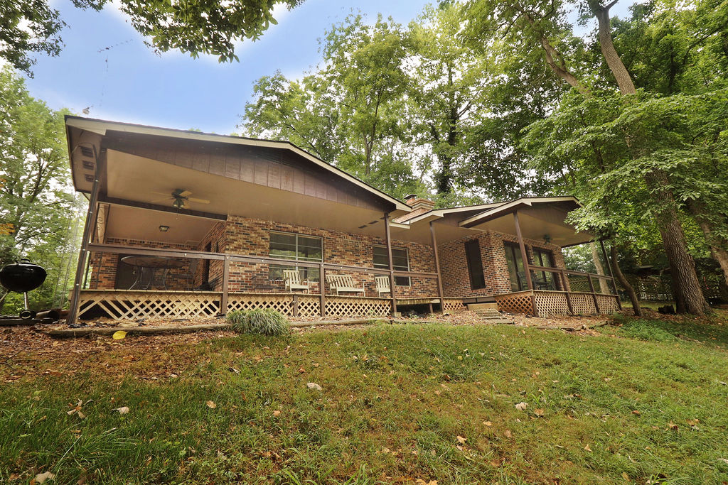 Relax with the whole family at this peaceful cabin in the woods. Nestled in tall cedars, away from hustle & bustle, yet only a 10 minute drive to the store. Enjoy the spacious deck and an outstanding view of the Ozark Mountains & Bull Shoals Lake. Plenty of outdoor space, including ample parking for multiple vehicles, boats, & trailers. Enjoy a cozy firepit. Inside the home is a large natural stone electric fireplace with color changing LED light features, located in the open layout living room.