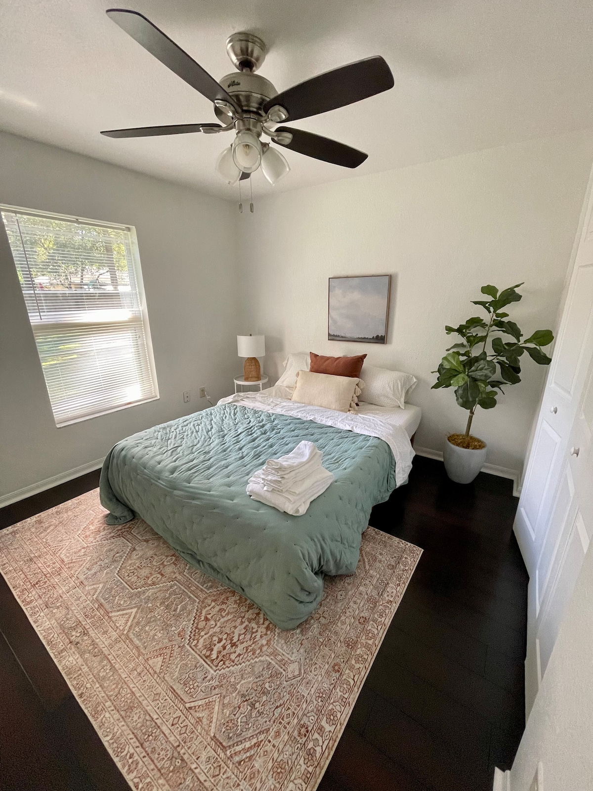 Neu renoviertes Queensize-Bett und voll ausgestattetes Schlafsofa - Schlafmöglichkeiten für 4 Personen, nur 12 Blocks von der Innenstadt von Ocala und 8 Meilen vom WEC (World Equestrian Center) entfernt. Frei vom Haupthaus mit Waschtrockner, eingezäunt auf der Terrasse, 1 Parkplatz, voll ausgestattete Küche. Leider keine Haustiere. Nicht babysicher. Gigablast High-Speed-Internet. Air-Bnb ist vom Haupthaus abgetrennt, aber auf demselben Grundstück. Bitte geh nicht in den Hinterhof des Haupthauses. Sicherheitskameras zeichnen den Schotterparkplatz auf.
