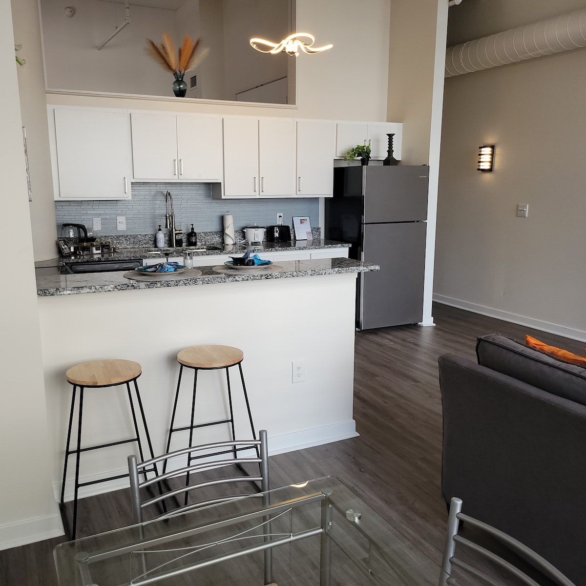 Stay in the heart of downtown Indianapolis with FREE garage parking and direct access to the Indianapolis Skywalk. Walk indoors to the Convention Center, restaurants, and major downtown attractions. This bright 6th-floor modern apartment with is perfect for convention visitors, sports fans, business travelers, and weekend getaways. Enjoy a fully stocked kitchen, fast WiFi, Roku TVs, workspace, washer/dryer, gym access, and comfortable mattresses for a relaxing stay.