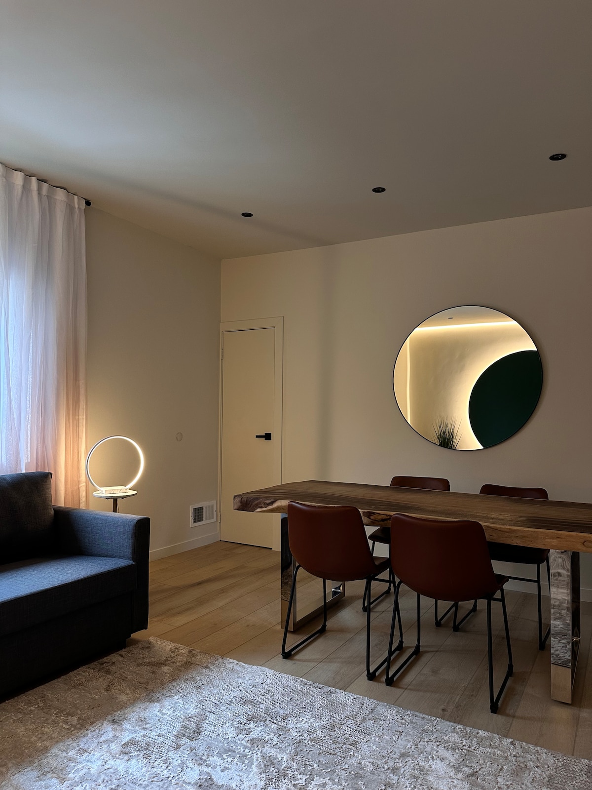 Welcome to the modern cozy atmosphere! This stylish place impresses with its brand new complete renovations. The new kitchen is equipped with the latest appliances, providing the perfect conditions for preparing your favorite meals. The private parking ensures convenience for guests, offering confidence in the safety of their vehicle. spacious folding sofa is perfect for coziness and comfort. It will serve as an excellent additional space for two people, providing both style and convenience.