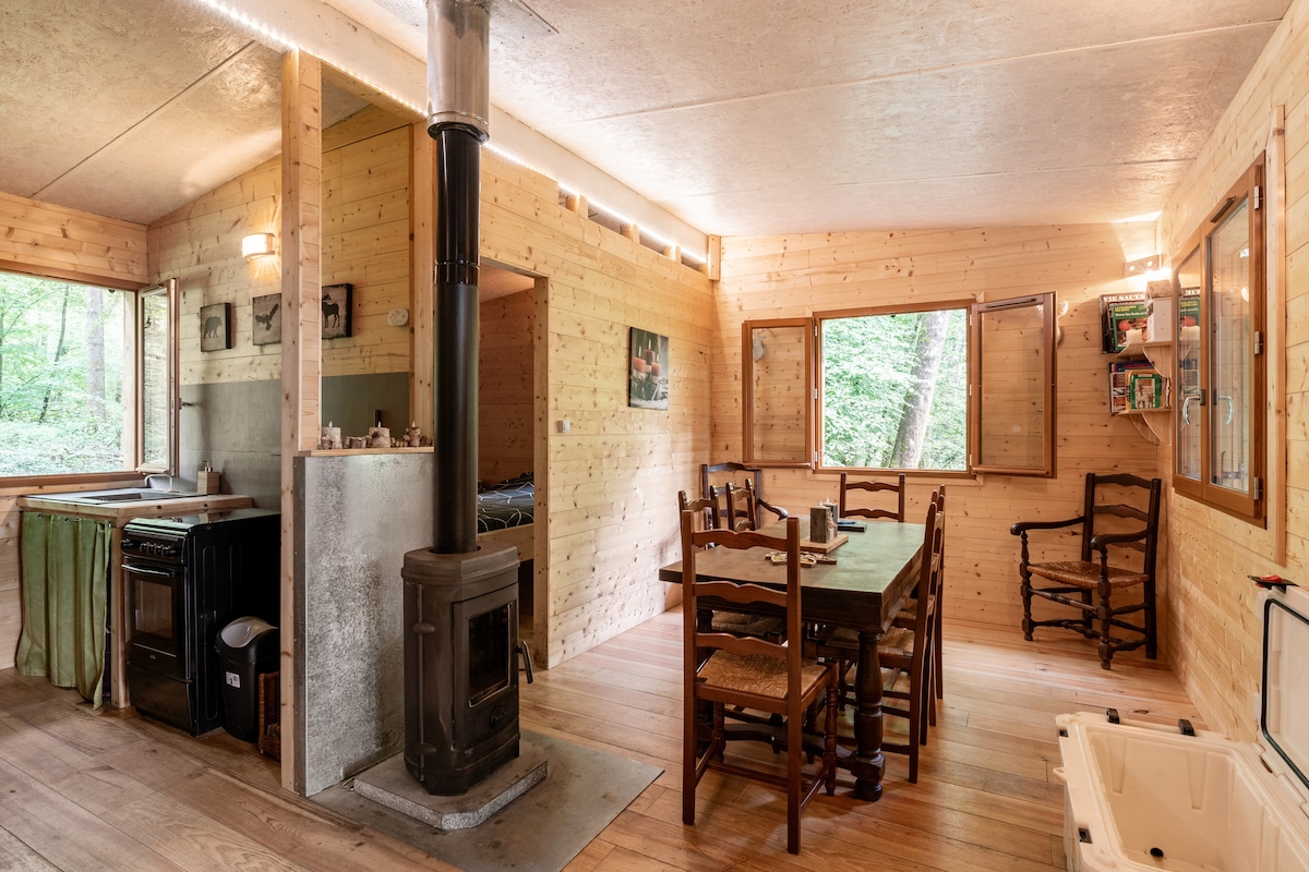 Au cœur de la Champagne près de la ville natale de Jean de la Fontaine Venez découvrir ou redécouvrir la nature au sein de notre chalet entièrement autonome en énergie (grâce à des panneaux solaires pour l'éclairage et une cuve de récupération d'eau) équipé pour recevoir 6 convives dans un massif boisé de 120 hectares ou la tranquillité est le mot d'ordre. L'accès au chalet se fait uniquement avec notre véhicule tout terrain à travers les vignes de champagne et les allées forestières