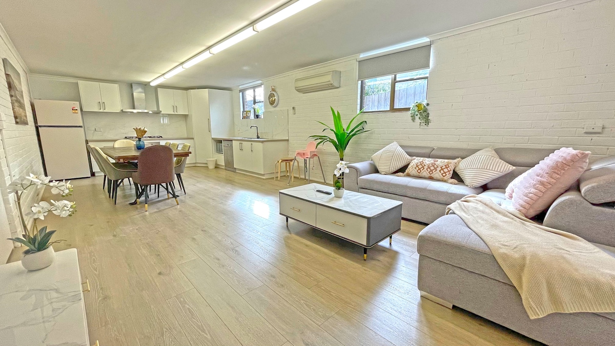 Willkommen in deinem zweiten Zuhause in Ringwood East! Dieses gemütliche Haus mit 2 Schlafzimmern ist perfekt für Familien und bietet Komfort in einer ruhigen, von Bäumen gesäumten Straße. Genieße ein renoviertes Interieur und die Gäste können Kinderspielgeräte, einen 120-Zoll-Laserprojektor, Tischspiele und eine voll ausgestattete Küche nutzen. Zwei separate Toiletten und eine Waschküche mit Waschmaschine und Trockner sorgen für zusätzlichen Komfort. Nur wenige Minuten vom Eastland Shopping Centre, der Ringwood East Station und dem Ringwood Lake Playground entfernt.