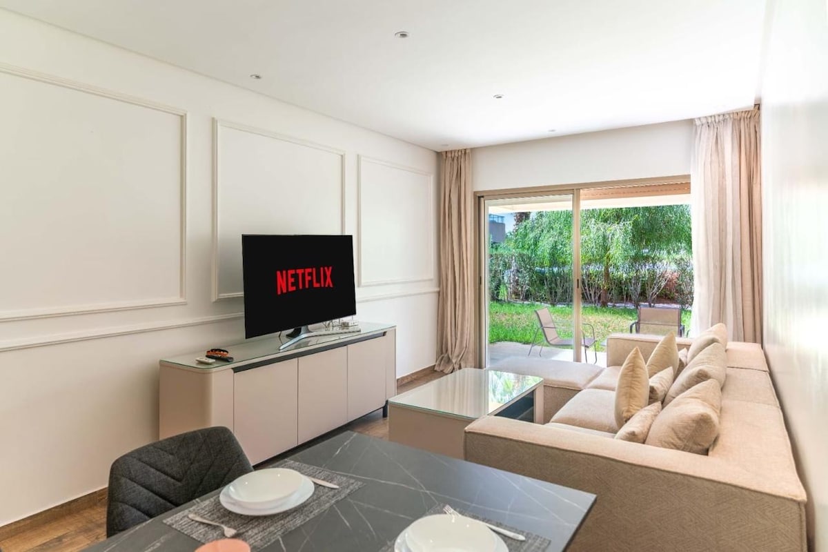 Détendez-vous dans ce logement unique et tranquille. A Prestigia Argan Golf Resort, Magnifique Appartement dans une résidence sécurisée : - Salon avec Canapé convertible, - Chambre lit double avec Tv connectée, - Deux terrasses vue piscine, - Fibre Optique 200 Mbps, idéale pour le streaming et le télétravail, - TV Smart avec IPTV et Netflix, - Cuisine équipée, - Piscine - Jardin, - Parking la piscine est ouverte à partir du mois Juin jusqu’au décembre.