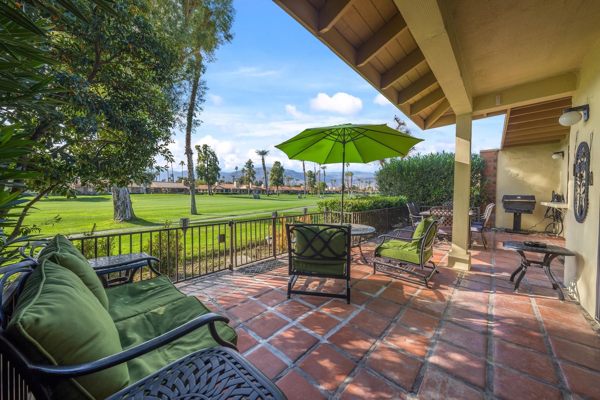 Relax and unwind at this peaceful and centrally-located fully stocked Condo located in the Palm Desert Resort Country Club; a 24 hour security gated community. Single level unit in the "Resorter, AKA." World class pickball and tennis courts. On the 10th fairway of the golf course! Amazing views of the sunset, mountains, golf course and clubhouse. 20 swimming pools and spas on property. Our guests have access to all amenities including Golf, Tennis, Pickleball, Clubhouse and restaurants.