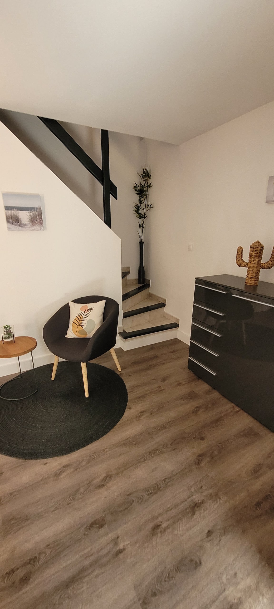 Erdgeschoss: Einbauküche mit Induktionskochfeld, Dunstabzugshaube, Backofen, Mikrowelle, Gefrierschrank, Geschirrspüler und Waschmaschine. Separates Wohnzimmer mit Schlafsofa, TV. Badezimmer mit WC. Im Obergeschoss ein Zimmer mit einem Bett in 160 + Schrank, ein zweites Schlafzimmer mit Bett 140+ Schrank. Badezimmer mit WC. Terrasse mit Elektrojalousie, Gartenmöbeln, Gasgrill und Plancha. 1 Parkplätze. WIFI In der Nähe: Geschäfte: 100 m strand: 230 m Markt: 900 m freizeitpark: 1 km hafen: 1 km