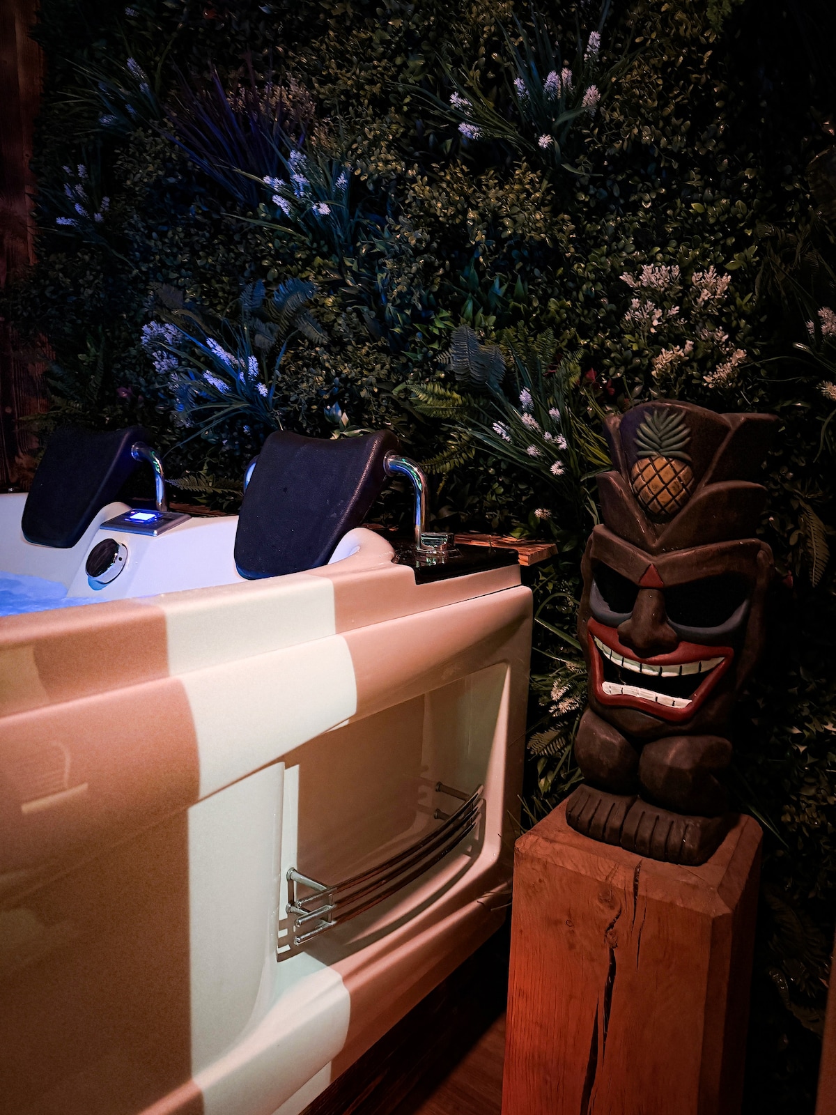 🏝️UNE SUITE JUNGLE UNIQUE À MARSEILLE🌿 Plongez dans un univers exotique conçu pour les couples en quête d’évasion et de détente. 💑 Cette suite à thème entièrement privatisée dispose d’un jacuzzi 🫧, sauna 🔥 et d'un écran de cinéma 🎬, dans une ambiance jungle exotique 🌴 Lumières tamisées, décoration soignée et arrivée autonome en toute discrétion, idéal pour se retrouver à deux ❤️ Options payantes disponibles (arrivée anticipée, départ tardif, Pack Romantique, etc.)