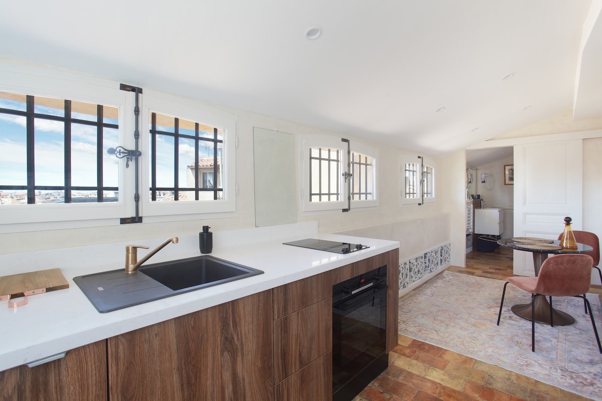 Appartement historique de standing au cœur d’Aix-en-Provence offrant une expérience rare. Volumes spectaculaires, hauteur sous plafond de 5,40 m et lumière omniprésente créent une sensation d’espace unique. Toutes les pièces sont vastes, élégantes et calmes, idéales pour familles ou groupes exigeants. Emplacement central permettant de tout faire à pied. Rénové avec des matériaux de qualité, il allie charme de l’ancien et confort moderne. Toutes les pièces sont climatisées et chauffées
