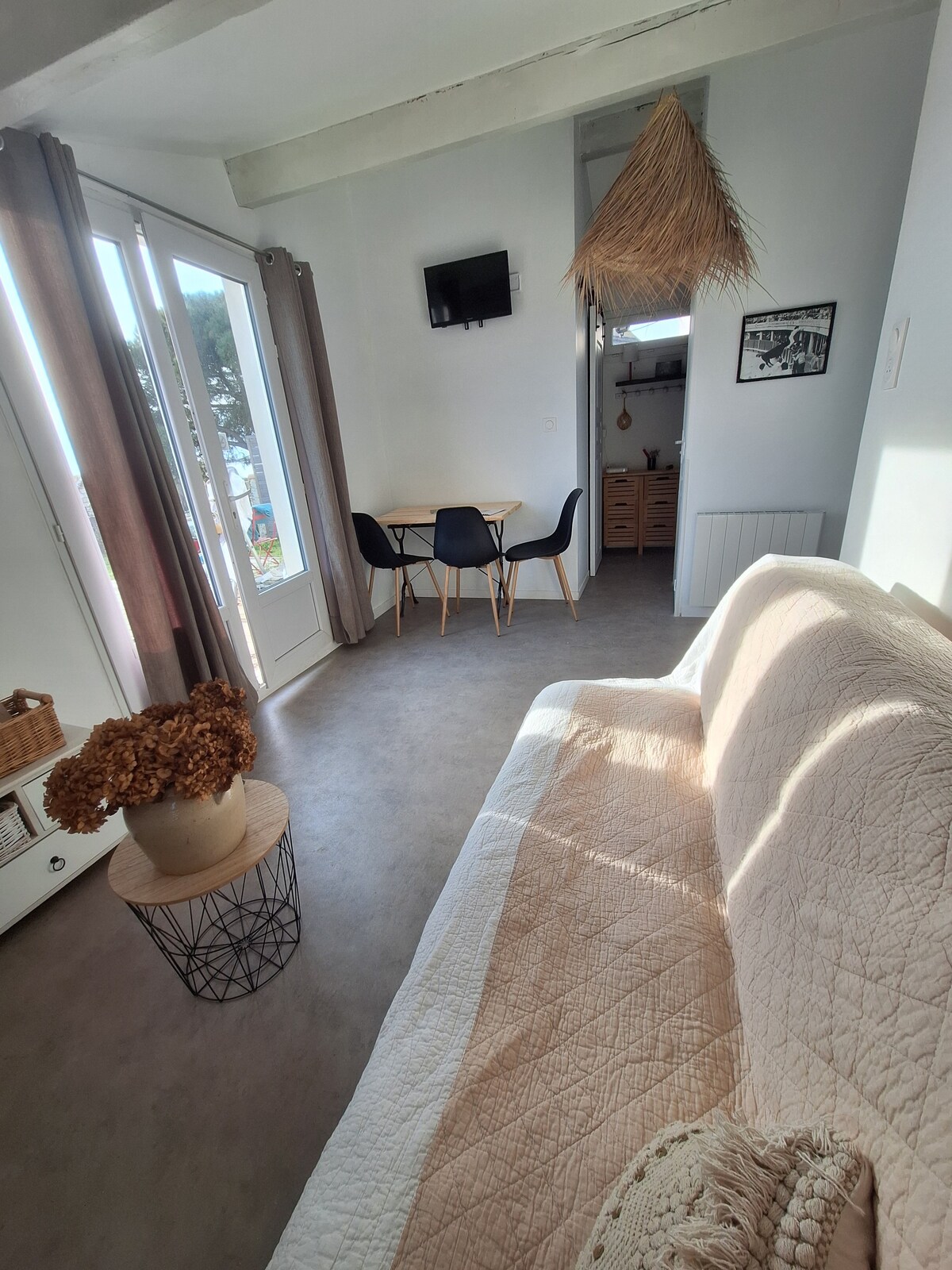Ideal für Familien mit Kindern sehr geeignet. Stadtzentrum, mit Blick auf den Teich, Einkaufsmöglichkeiten in der Nähe. Sehr schöne private Wohnung von 45m², renoviert, klimatisiert, ruhig Mit Blick auf den Garten 1 Schlafzimmer 1 Bett 2pl + Sofa BZ 2pl, Babybett auf Nachfrage. Großer, komplett eingezäunter und bewaldeter Garten mit oberirdischem Pool und Spielen für Kinder Wunderschöne private überdachte Terrasse, die zum Frühstücken und zum warmen Abendessen, Plancha und Grill geeignet ist. Strände in 2 km Entfernung Mögliche 3/4 Personen in + im Studio konsultieren Sie uns.