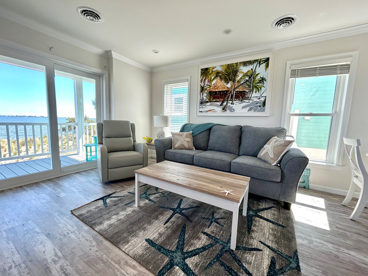 The Sand & Surf at Ocean view located on the Indian River. Elevated on stilts for a leveled up escape,right on the Indian river our pool overlooks the beautiful Indian River Bay , lay back and enjoy the warm breeze while lounging and swimming. We added fishing poles for our private fishing pier on property as well . A few minutes over the bridge and you've arrived on Hutchinson island beaches . Enjoy our bikes and take a walk to Jensen beach town and enjoy the restaurants of downtown Stewart.