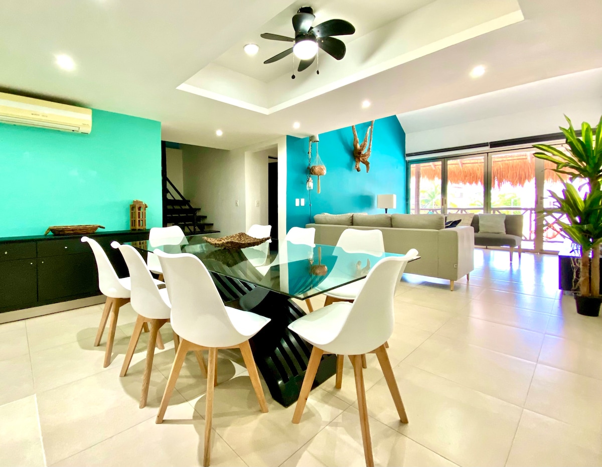Wake up to the Caribbean Sea in this stunning 200 m² duplex penthouse. - Accommodates up to 8 guests with 3 elegant bedrooms. - Bright living room with sea views and outdoor terrace. - Modern kitchen and indoor dining area. - Private rooftop terrace with jacuzzi. - Exclusive Beach Club access and semi-Olympic pool. - 24/7 security and high-speed internet. This rare penthouse is more than just a vacation rental, it’s an elevated lifestyle experience by the sea.