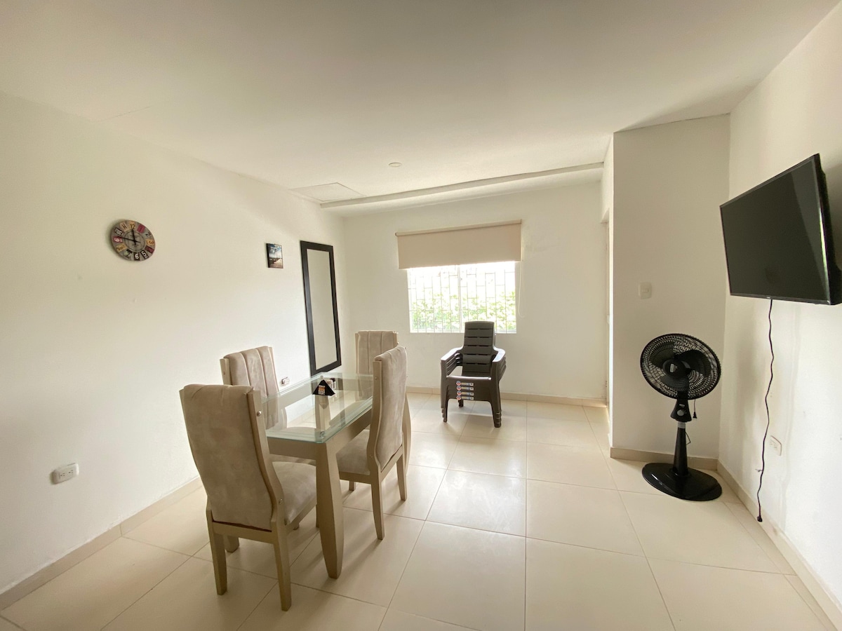 Moderno y acogedor apartamento de 2 habitaciones totalmente equipado, ideal para familias, parejas o grupos pequeños. Ubicado a solo 3 minutos del aeropuerto, ofrece comodidad y fácil acceso a la ciudad. El apartamento cuenta con: 🏠 2 habitaciones confortables 🍳 Cocina equipada con todos los utensilios 🛋️ Sala amplia y luminosa con TV y WiFi 🚗 Parqueadero disponible Ya sea que viajes en familia, en pareja o por trabajo, aquí encontrarás un lugar tranquilo y cómodo para disfrutar y relajarte.